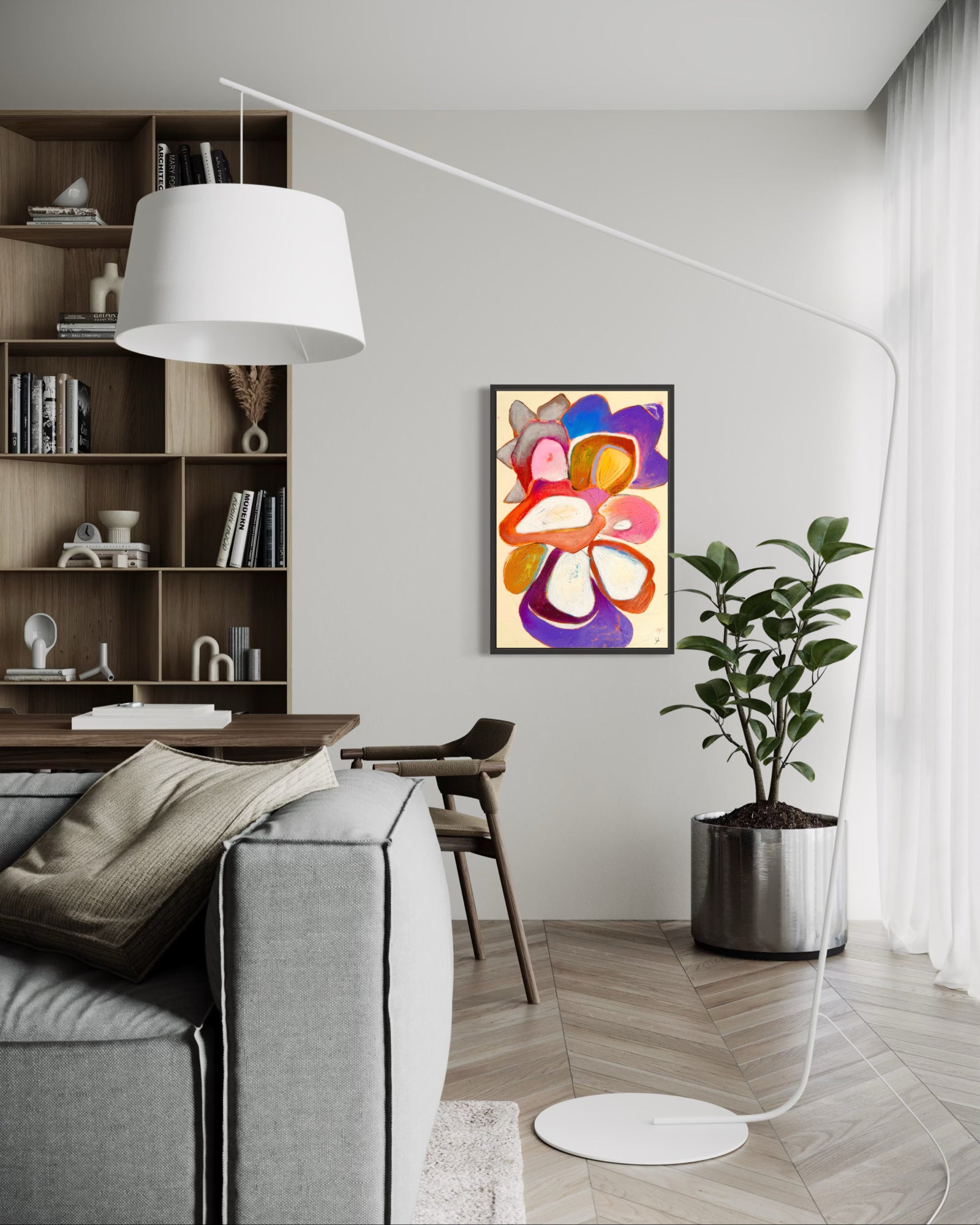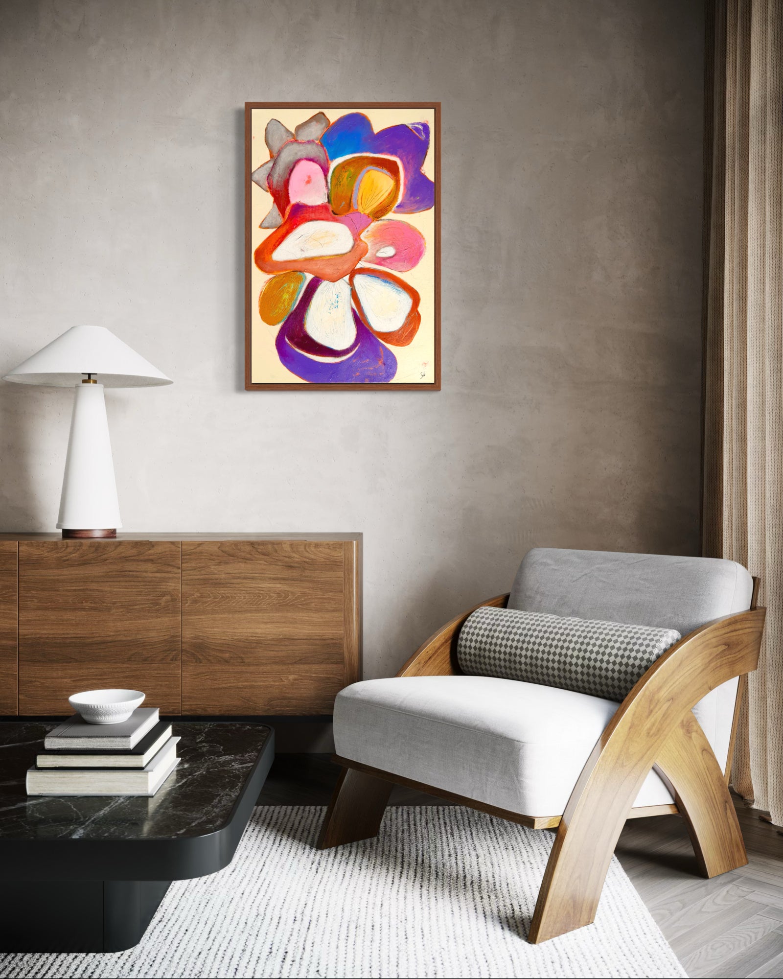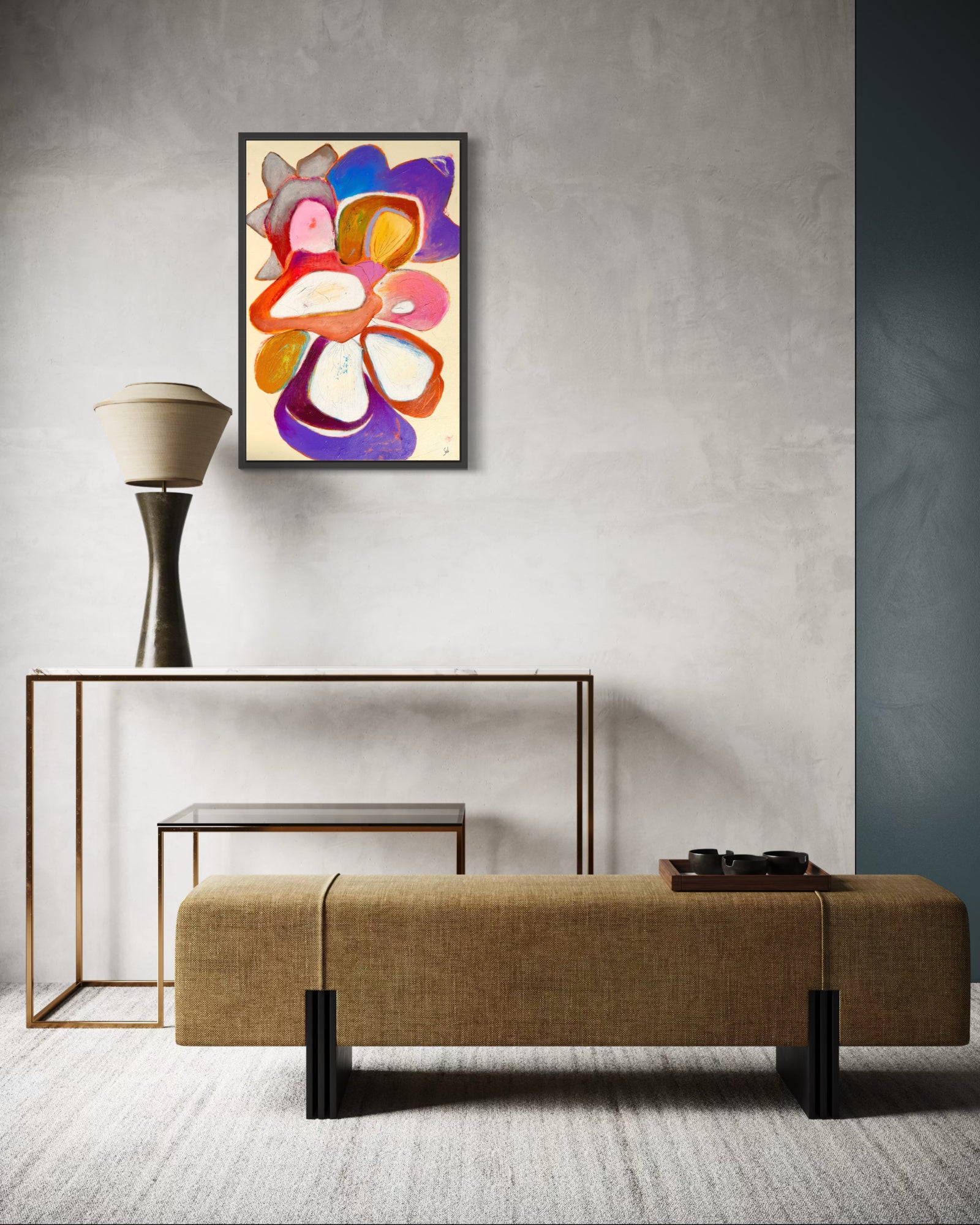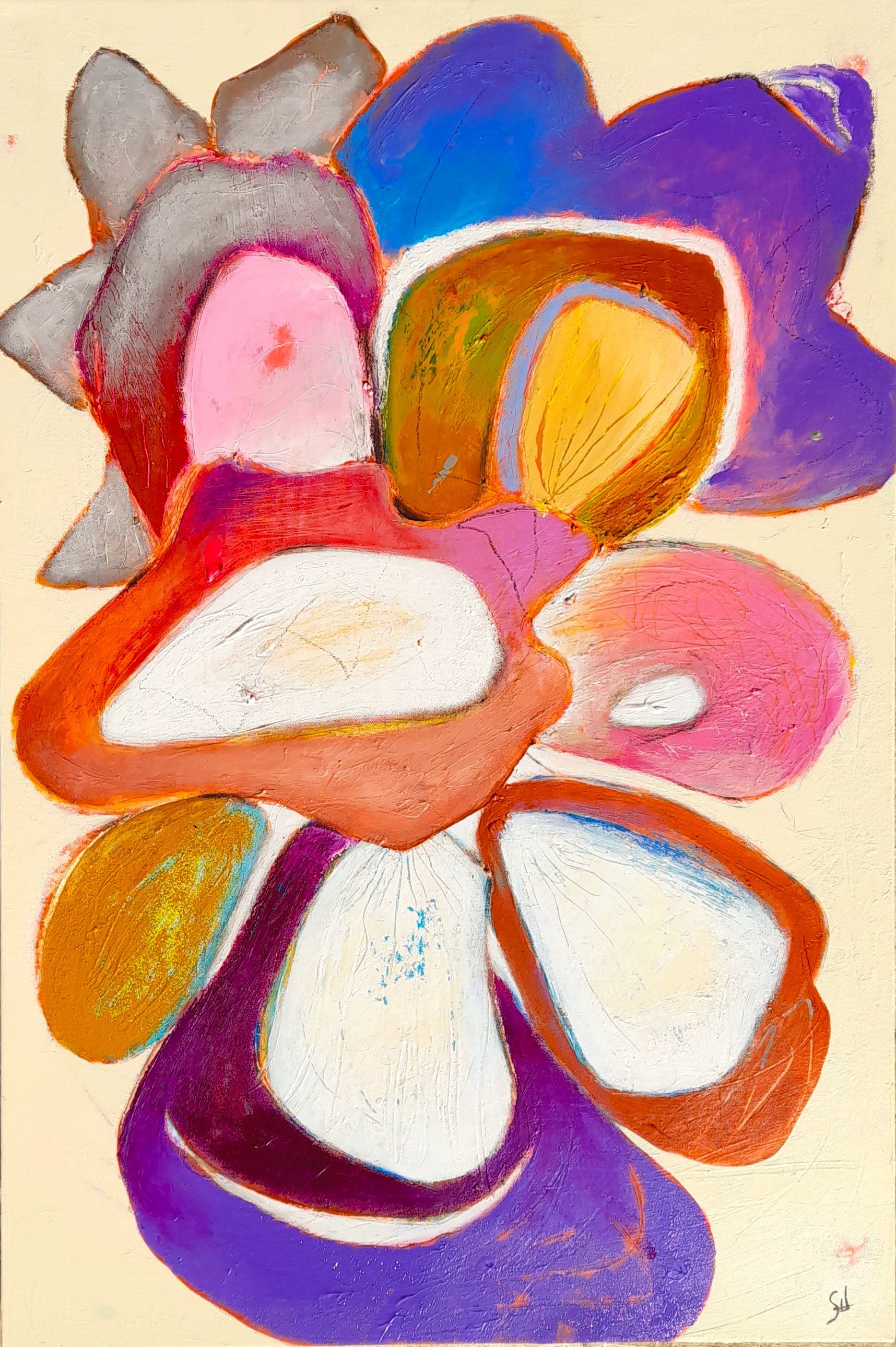 Pétalos suaves, tonos atrevidos: esta abstracción floral evoca la belleza atemporal de los jardines de Alcobaça, una composición donde la naturaleza baila con emoción, textura y color.