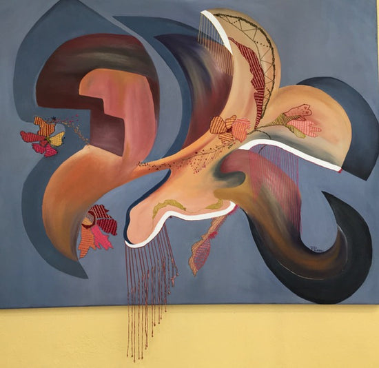 Sensualidade seduces the eye with sinuous forms, cascading textures, and warm, flowing gradients. Intertwined threads and fabric-like elements echo the tactile memory of skin and movement, giving physicality to a purely abstract composition.
