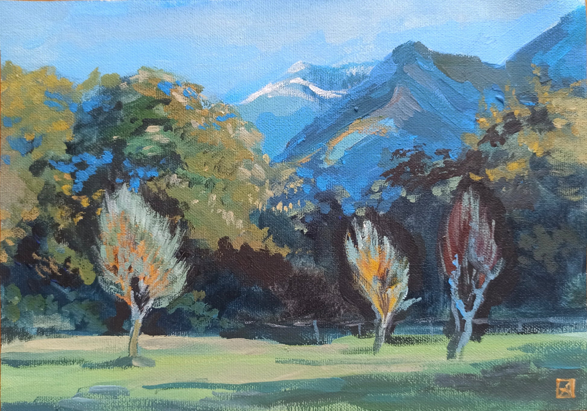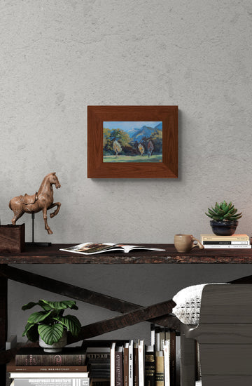 Capture the essence of the majestic Alps with this serene landscape painting, featuring the towering peaks and lush foliage of this iconic mountain range. The artist’s delicate brushstrokes and vibrant palette of blues and greens convey the crisp, refreshing air of an alpine day, bringing the beauty of the outdoors into your space. Perfect for lovers of mountain landscapes and nature-inspired decor, this piece adds a sense of calm and the timeless allure of the Alps to any room.