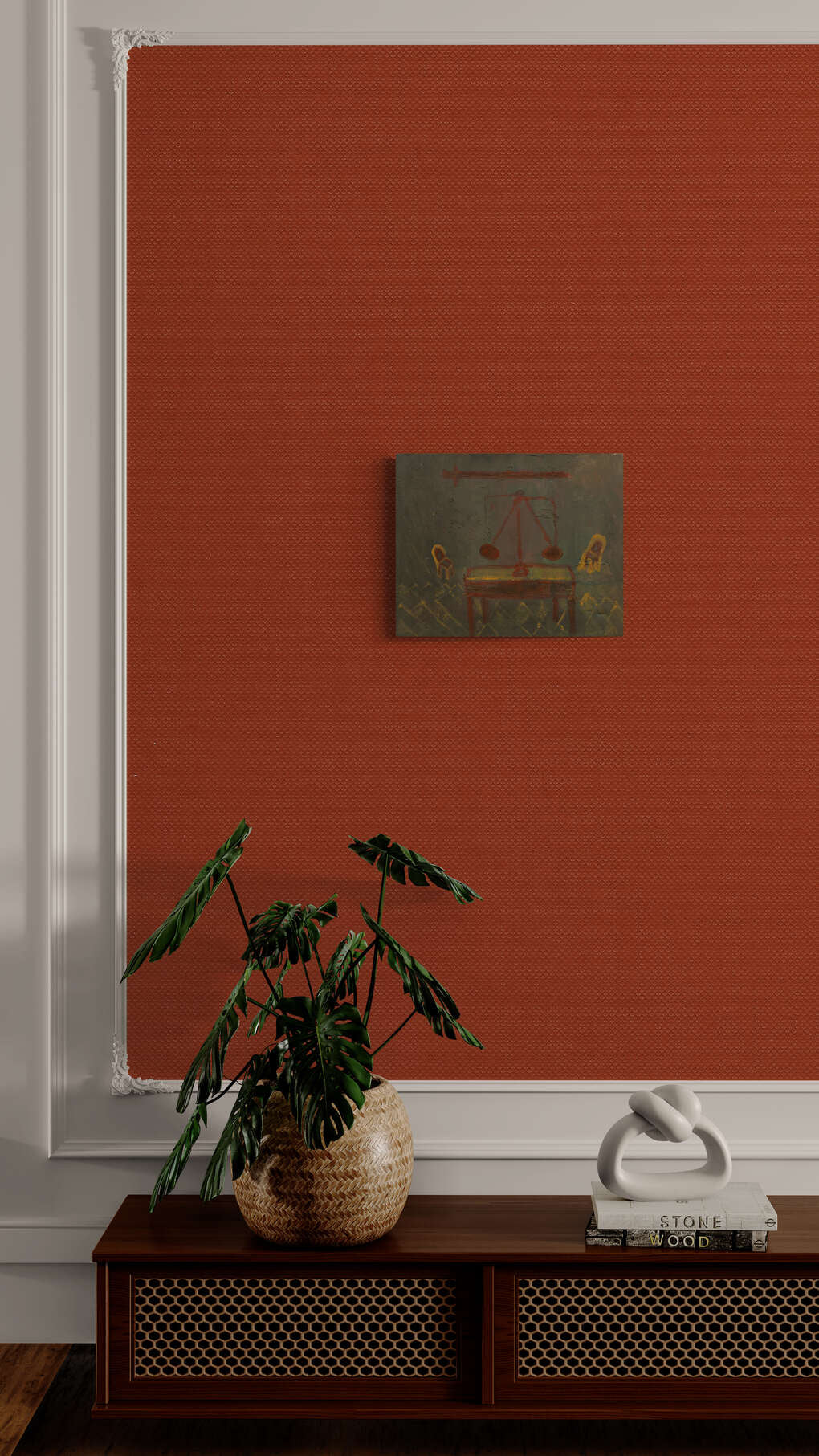 This abstract painting features a stylized balance scale placed on a table, flanked by two chairs. The muted colors and rough textures evoke a sense of contemplation and equilibrium, inviting viewers to ponder the delicate balance of life and justice.
