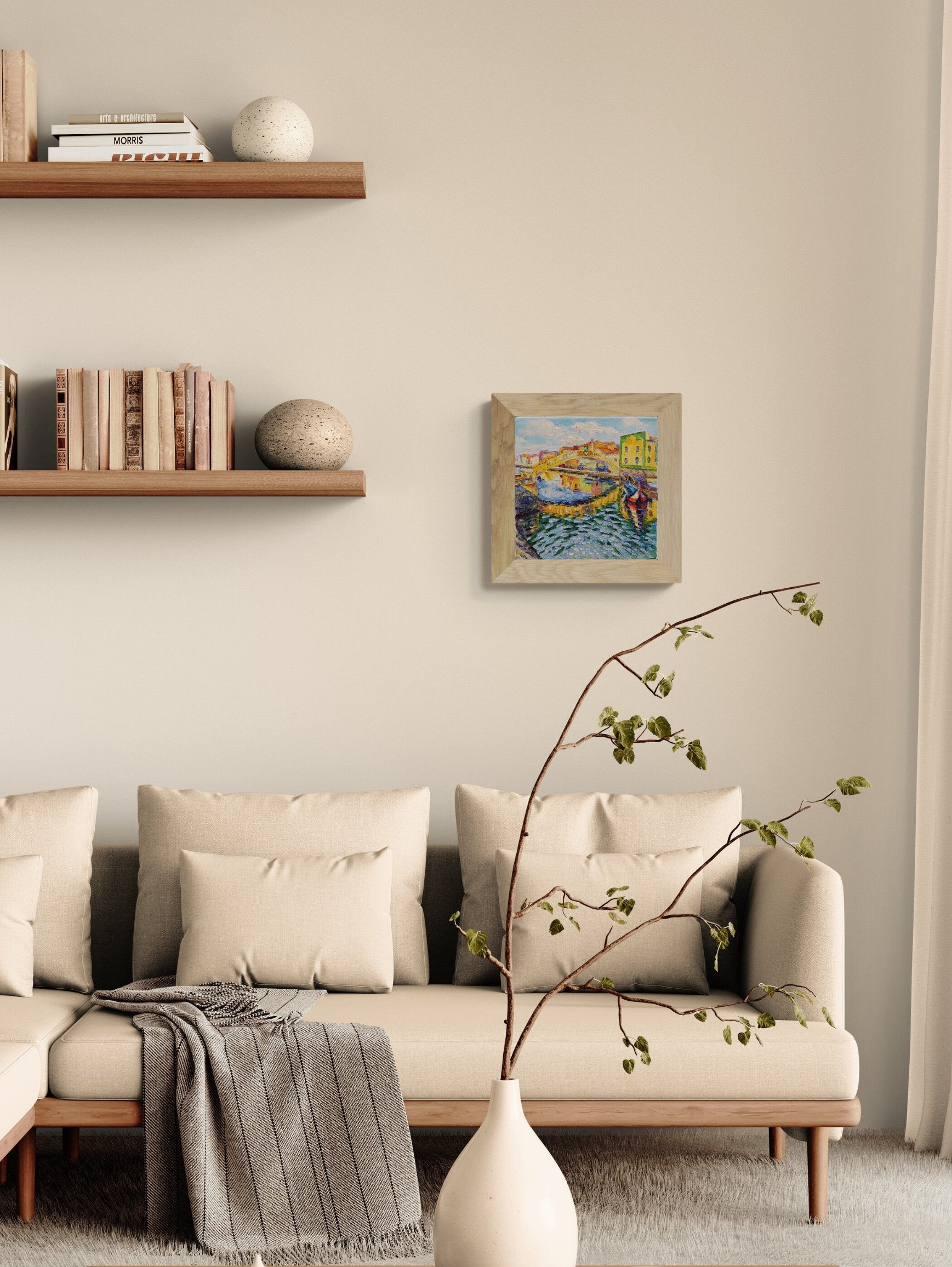 Depicting the iconic beauty of a Venetian bridge at dusk, this piece captures the reflections of light on the water and the lively atmosphere of the surrounding area. A beautiful addition for anyone who admires cityscapes and architectural elegance.