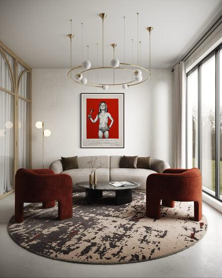 The overall style is thought-provoking, blending realism with graphic design or illustration elements, and it engages with contemporary themes and narratives.