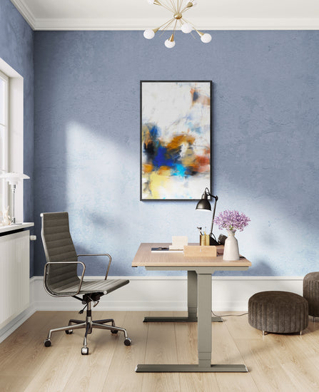 This abstract piece combines soft, blurry shapes and vibrant splashes of color to create an ethereal, dream-like landscape. Hues of blue, orange, and white blend seamlessly, evoking a sense of tranquility and fluidity. The painting's abstract nature allows for multiple interpretations, inviting viewers to immerse themselves in its calming and otherworldly atmosphere.