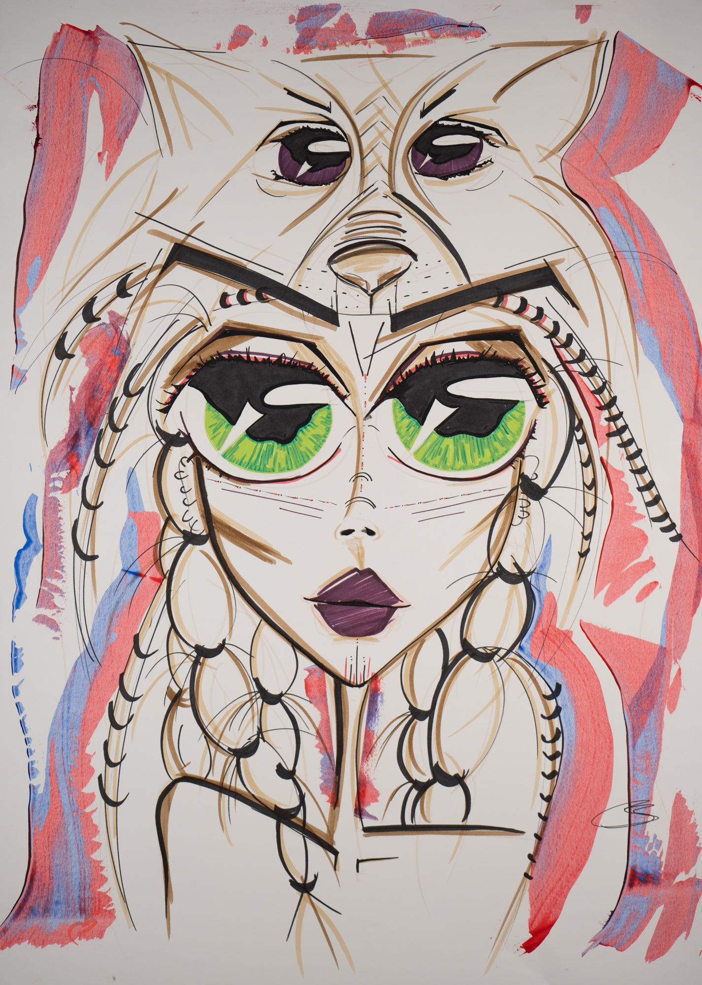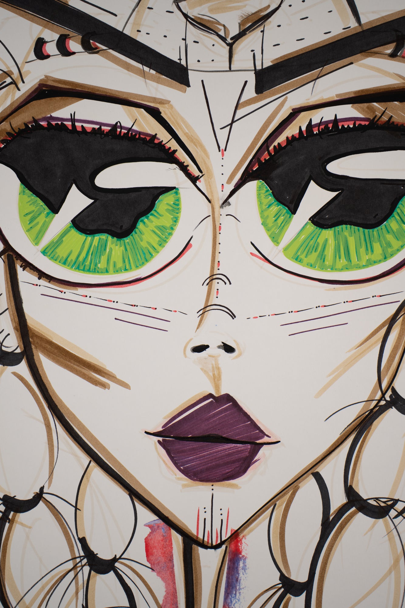 Acrylic Marker and Watercolor on paper, 84x59 cm