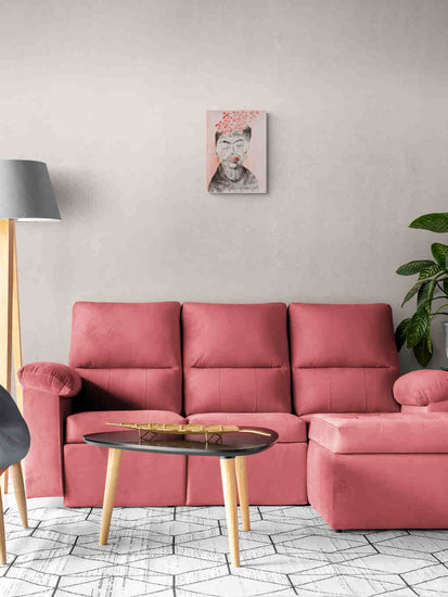 A striking portrait of a serene figure adorned with a crown of flowers. The delicate lines and soft hues blend harmoniously, capturing an ethereal and introspective mood. The subtle use of red and pink tones adds a touch of warmth and grace.