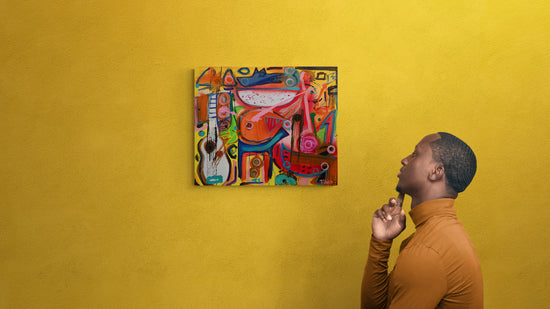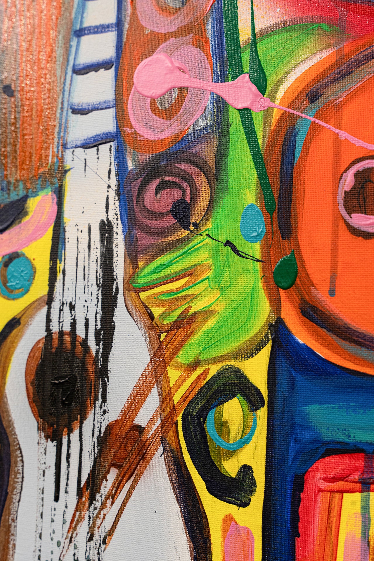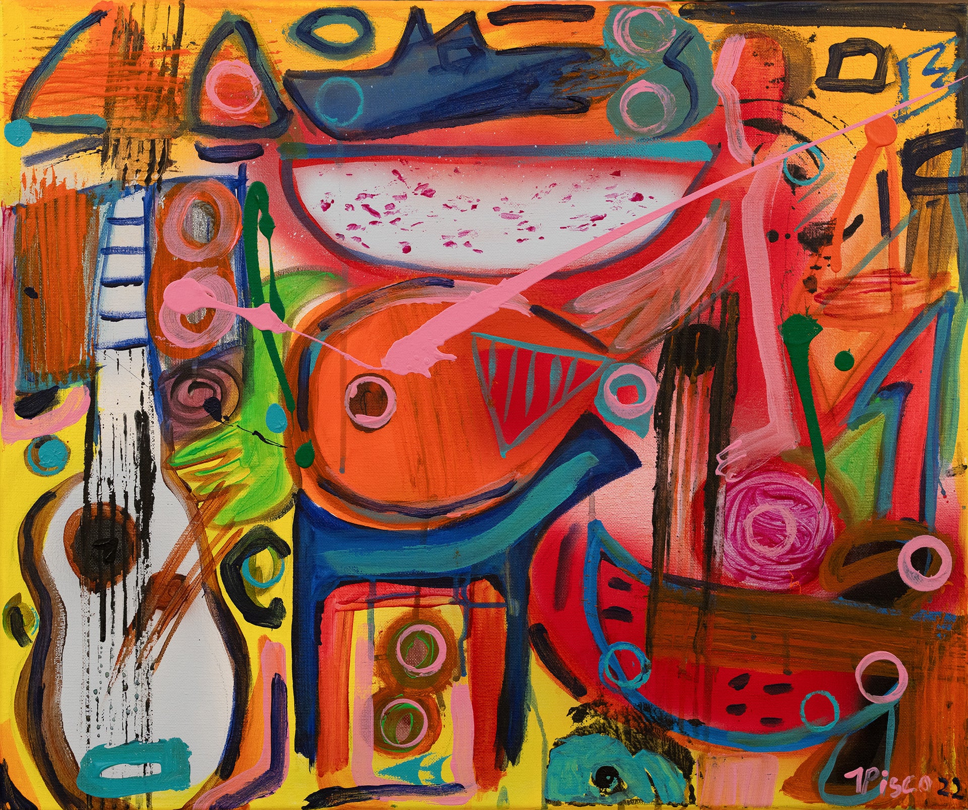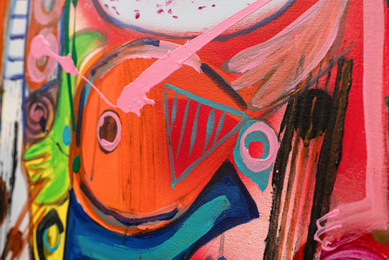 The artwork carries a sense of movement and rhythm, encapsulating a vibrant, abstract narrative.