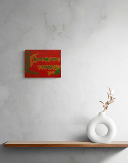 A vibrant tribute to the poet Konstantinos Kavafis, this piece uses bold text and organic shapes to celebrate his legacy. The contrasting colors and expressive brushstrokes convey the emotional depth and cultural significance of his work.