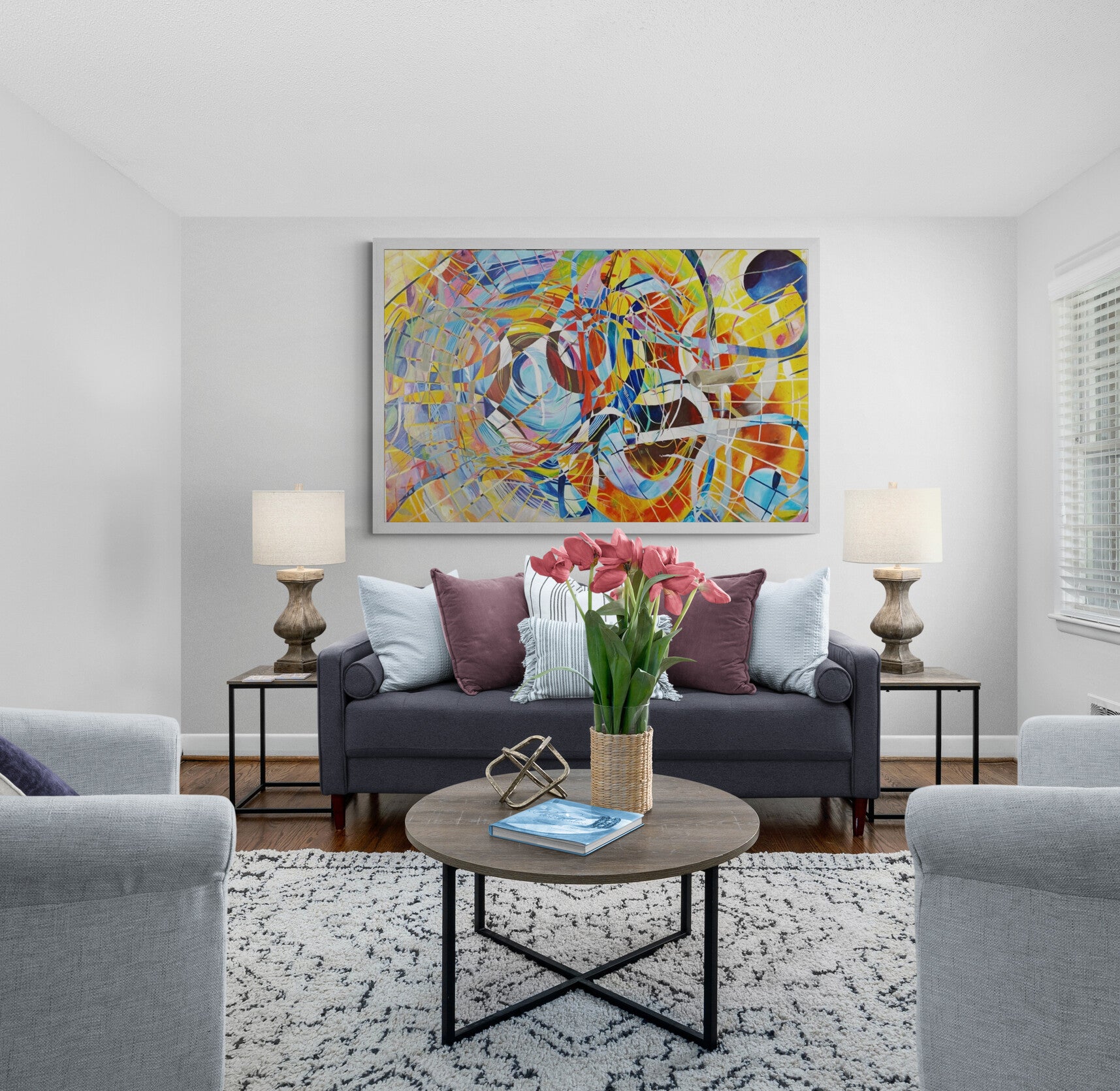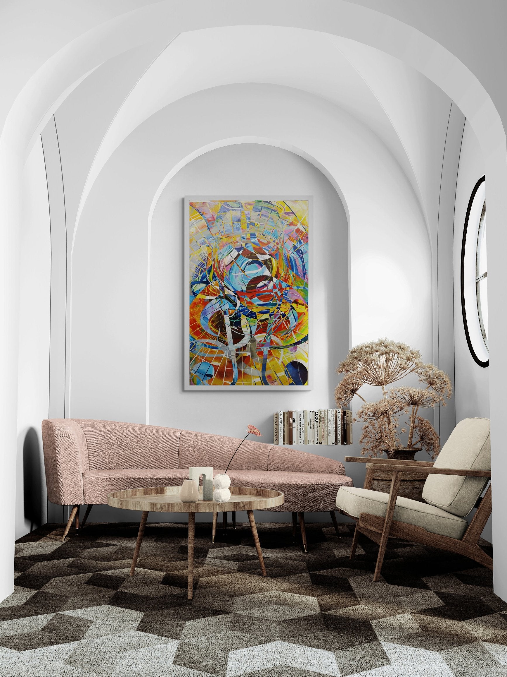 Energize your space with this dynamic abstract painting bursting with color and movement. Bold lines, vivid hues, and swirling patterns converge in a harmonious dance of form and light, creating a visual symphony that captures the eye and ignites the imagination. Perfect for modern and contemporary spaces, this artwork brings a sense of excitement and artistic flair, making it an ideal statement piece for those who love bold, expressive decor.