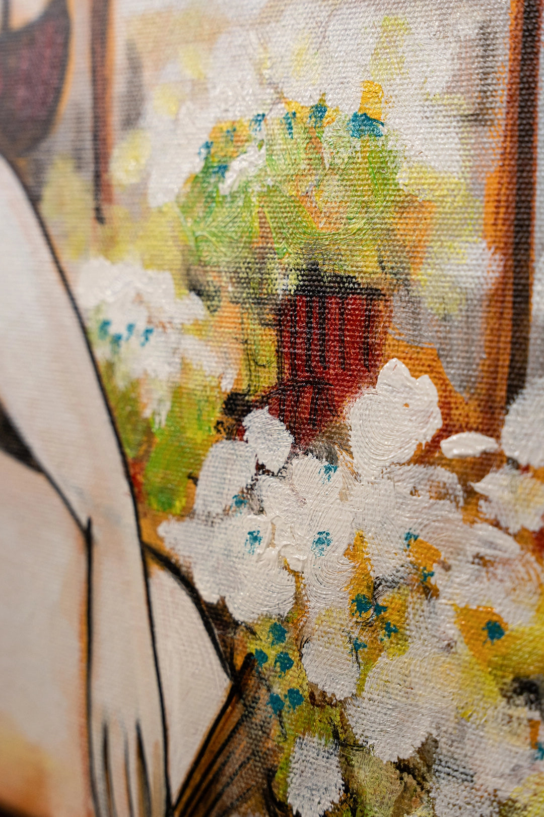 The treatment of the subject with exaggerated and stylized features imbues the painting with a sense of narrative and character.