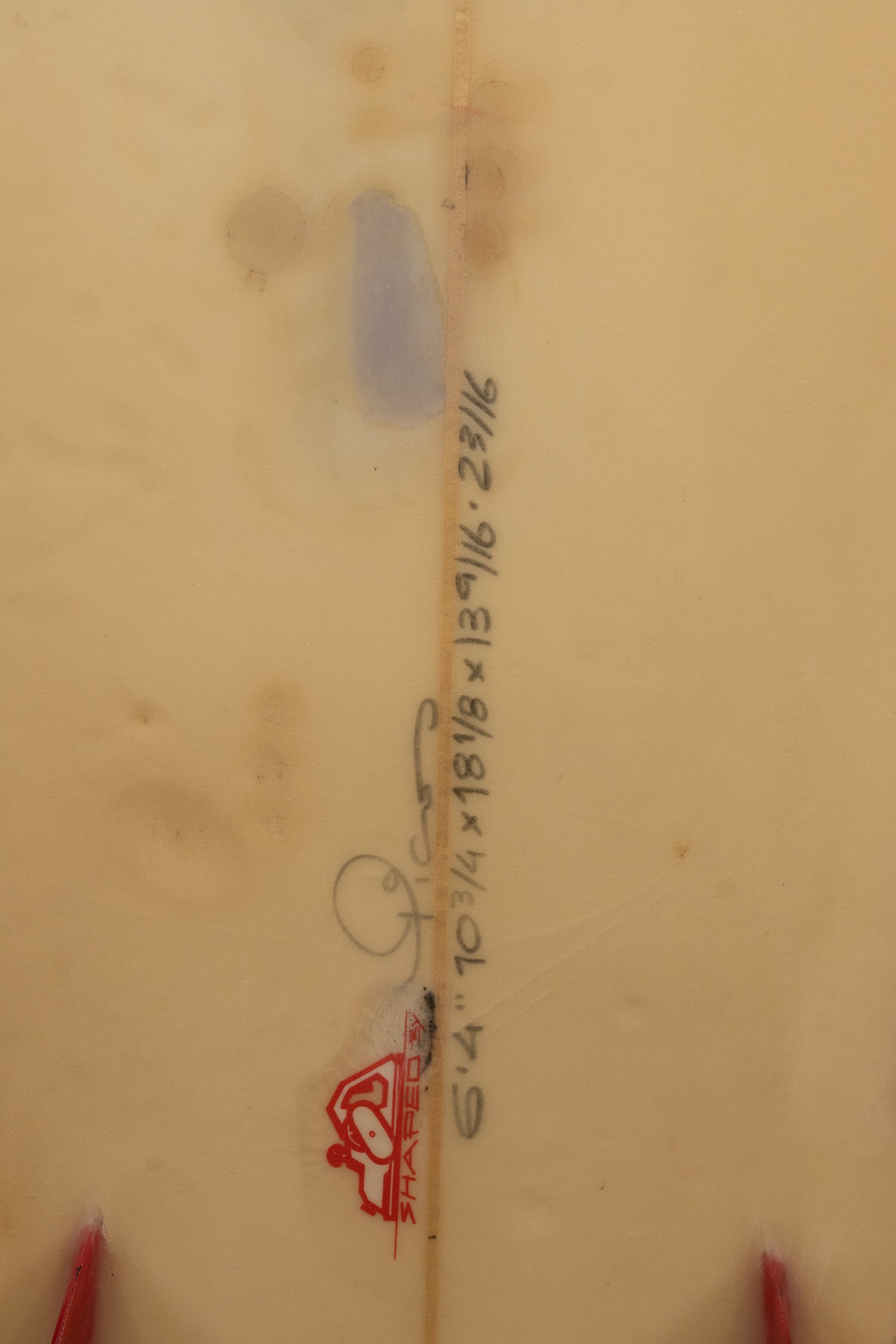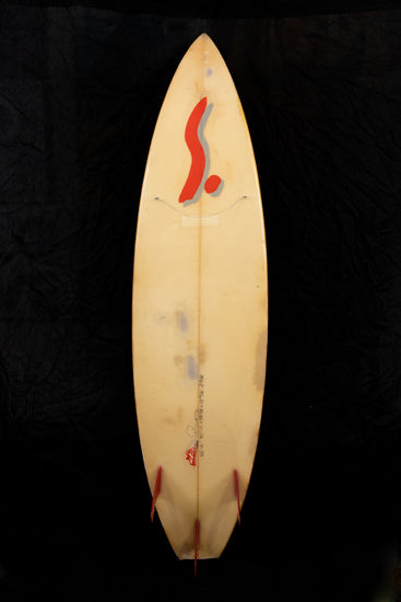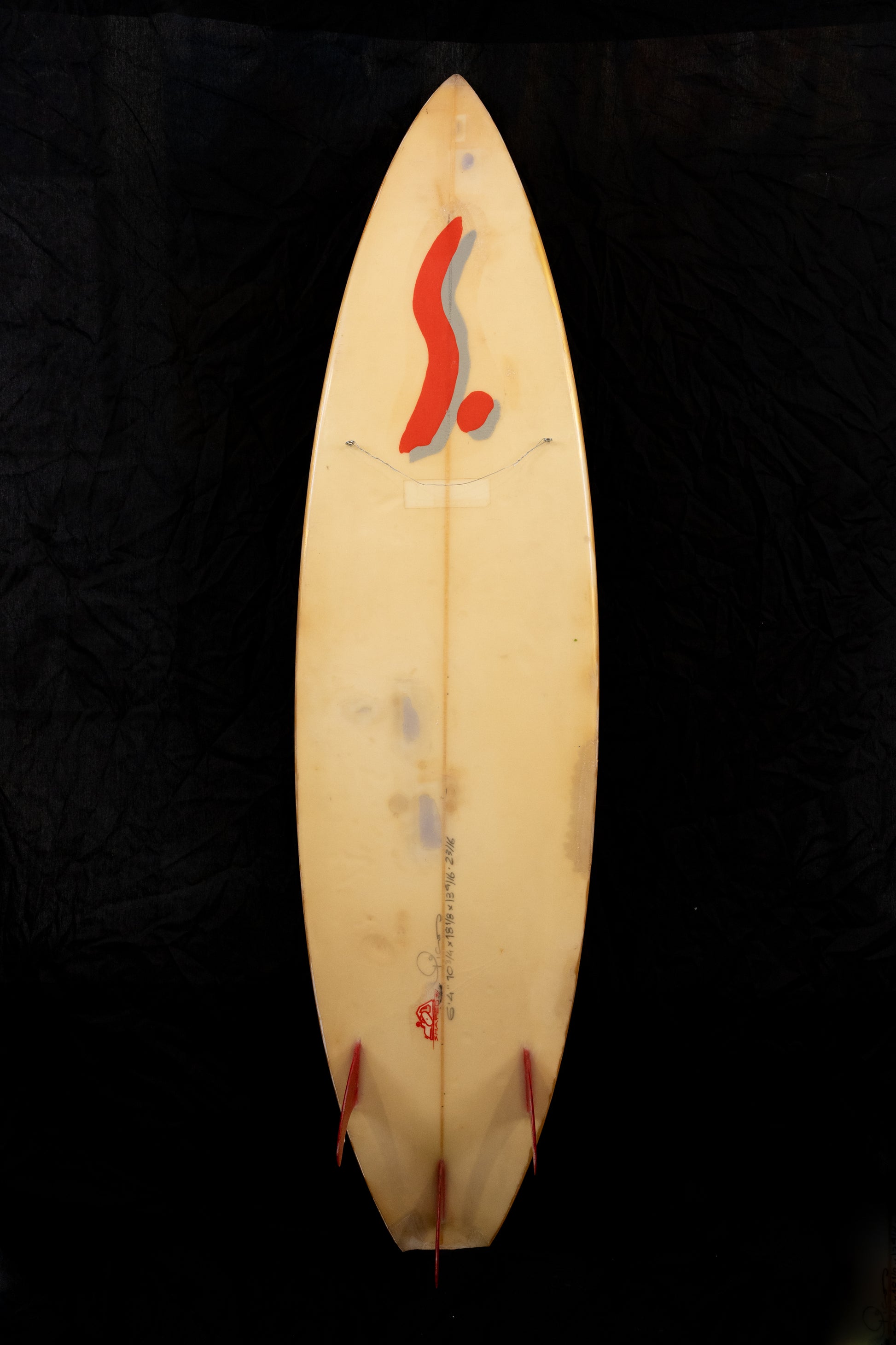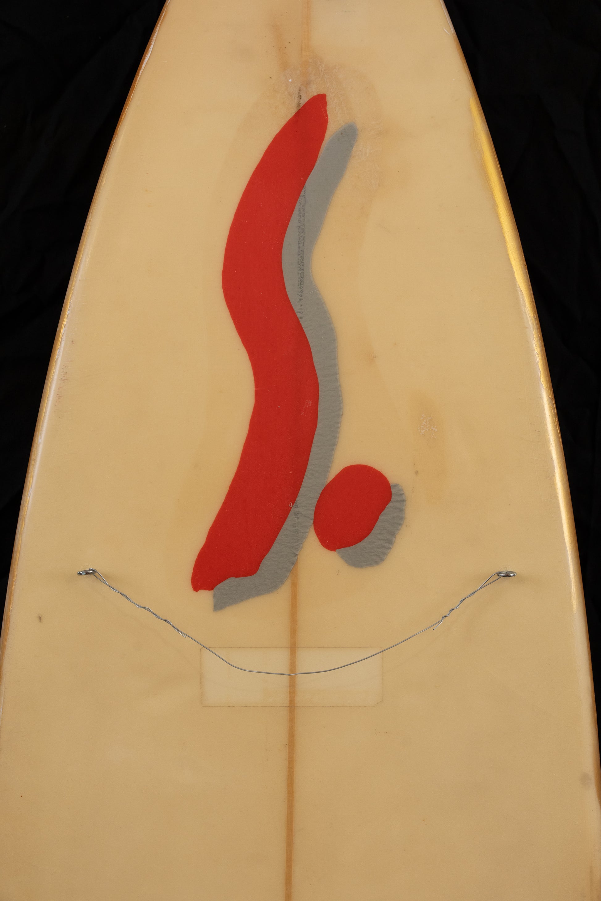 This surfboard artwork features a vivid, stylized representation of Lisbon landscape. Buildings in various colors and designs are painted, each representing different architectural styles.