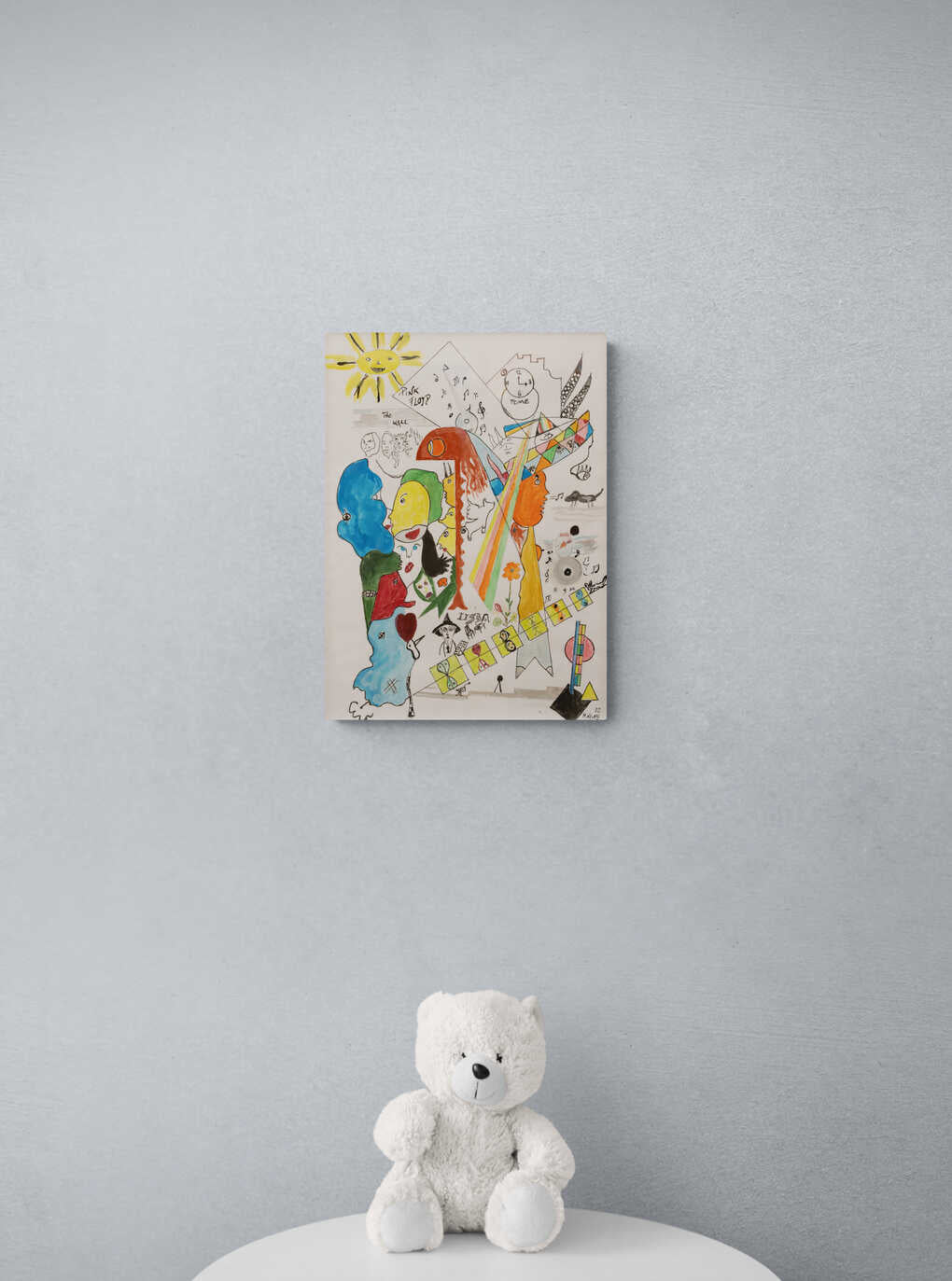 A dynamic and colorful abstract piece that blends musical motifs with geometric shapes. This painting celebrates the interplay of music and visual art, creating a vibrant and engaging composition.