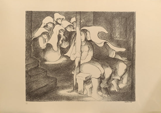 A collection "Drawings from Prison" were made between 1951 and 1959 in the prisons of the Penitentiary of Lisbon, where Álvaro Cunhal spent seven years in rigorous isolation, and from the Fort of Peniche, from where he escaped on January 3, 1960. They were first published by the "Avante!" Editions in December 1975 as part of fundraising initiatives for the Portuguese Communist Party.