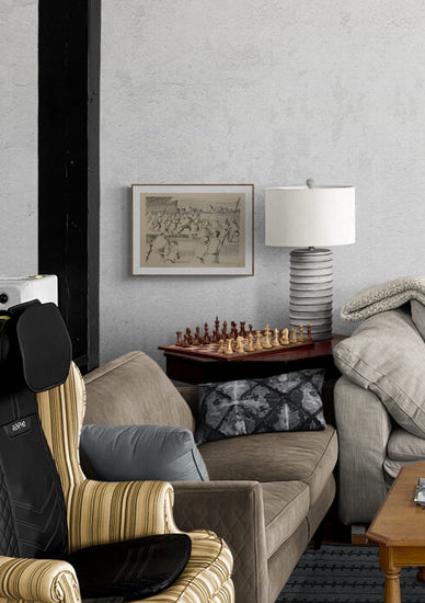 The figures are rendered in strong, flowing lines, evoking the power of collective action. The banner that they carry underscores their purpose, while the soft, shaded landscape contrasts with the determined energy of the people. The composition exudes a sense of momentum and shared struggle, with the figures moving forward in solidarity.