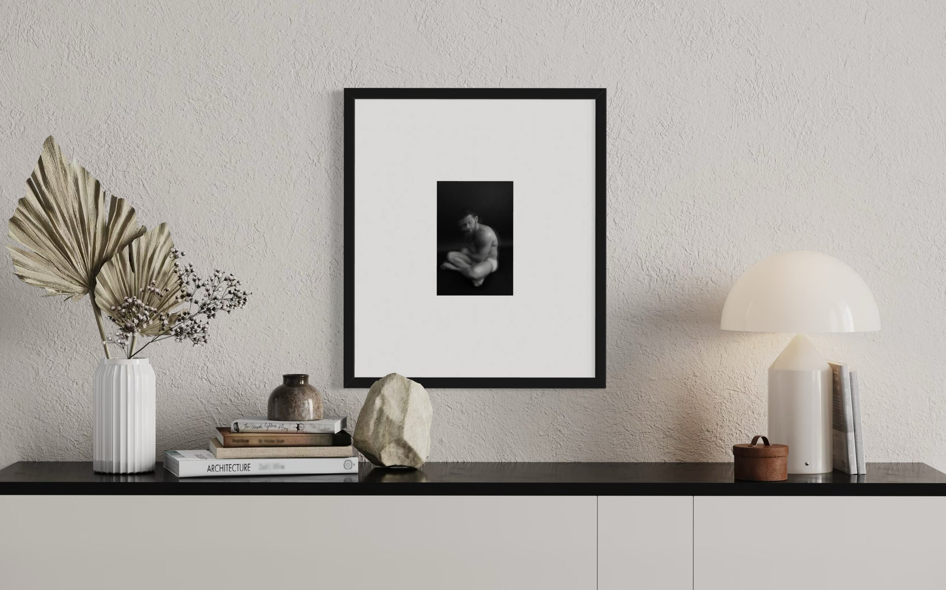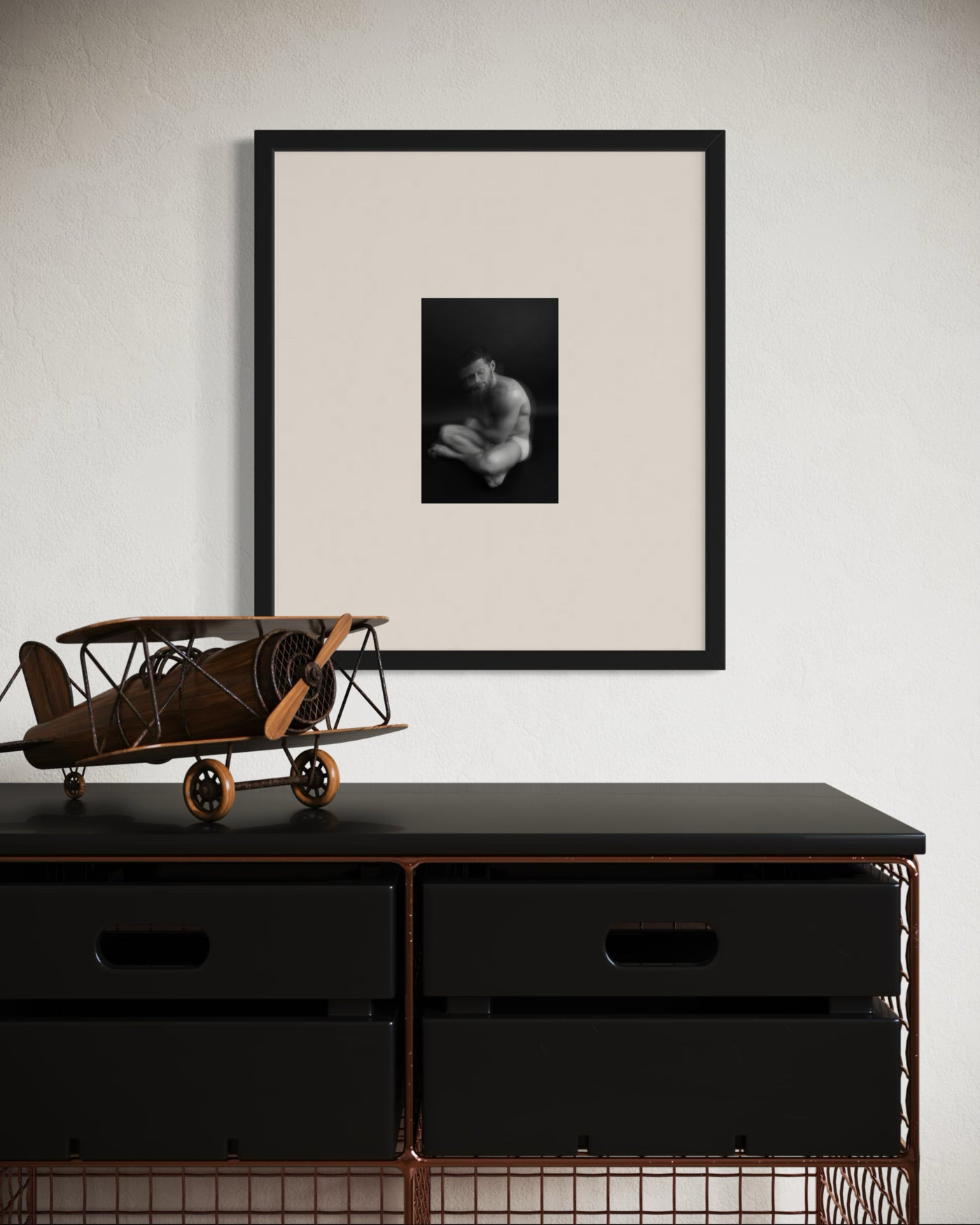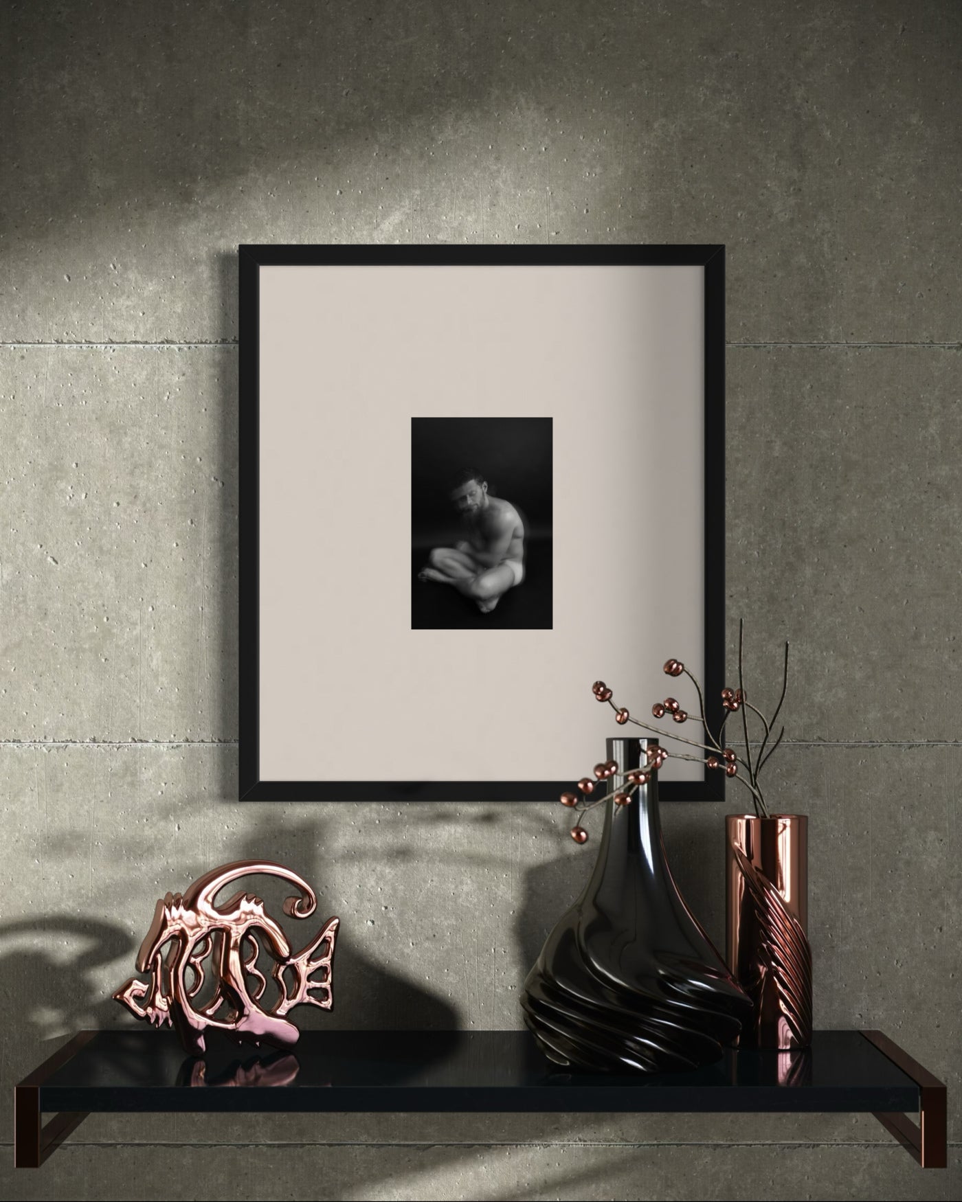 This emphasis on the subject’s back invites viewers to contemplate themes of introspection and anonymity, reflecting the internal complexities of performing masculinity. By positioning the figure in this intimate yet reserved pose, Breda conveys a sense of both strength and vulnerability, aligning with his broader exploration of gay identity and the conflicting pressures of heteronormative beauty standards.