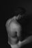 In this black-and-white photograph by Duda Breda, a nude male figure is shown from behind in a subdued, minimal environment. Soft focus and gentle lighting highlight the natural textures of his back—from the slight curve of his shoulders to the subtle freckling across his skin—while his face remains partially obscured.