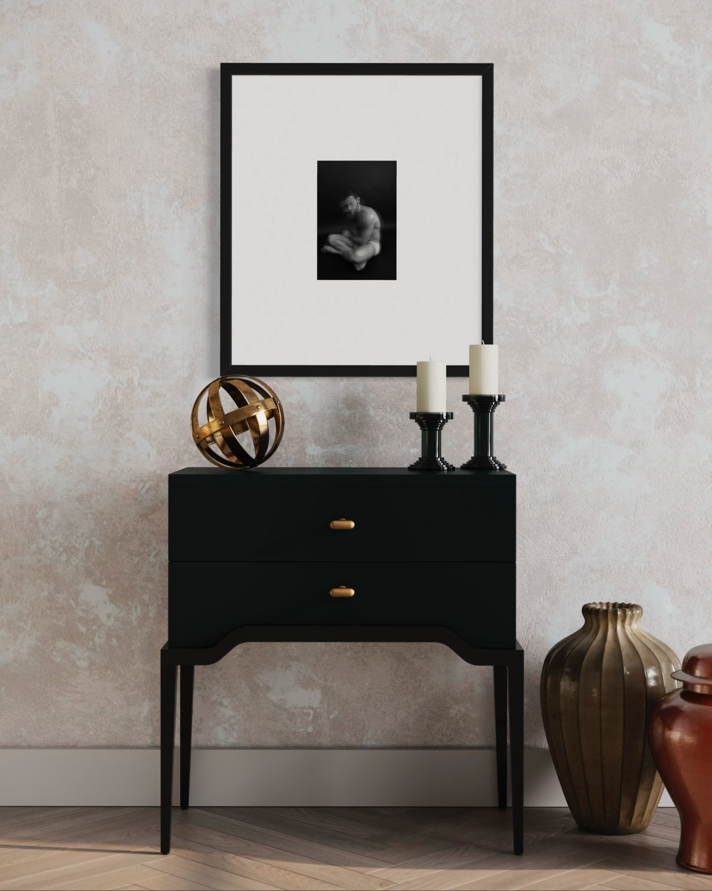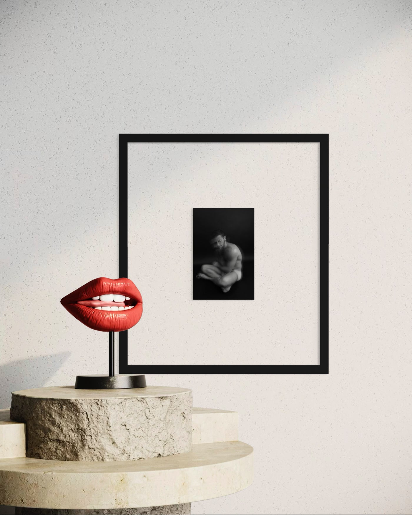 Through this delicate interplay of focus and blur, Breda continues his exploration of gay men’s identity, drawing attention to the tension between society’s rigid ideals of masculinity and the personal, often fragile experience of existing within those parameters. The dark, minimal backdrop isolates the body in a space where the subject appears caught between revelation and retreat, inviting viewers to question the emotional impact of striving for heteronormative standards.