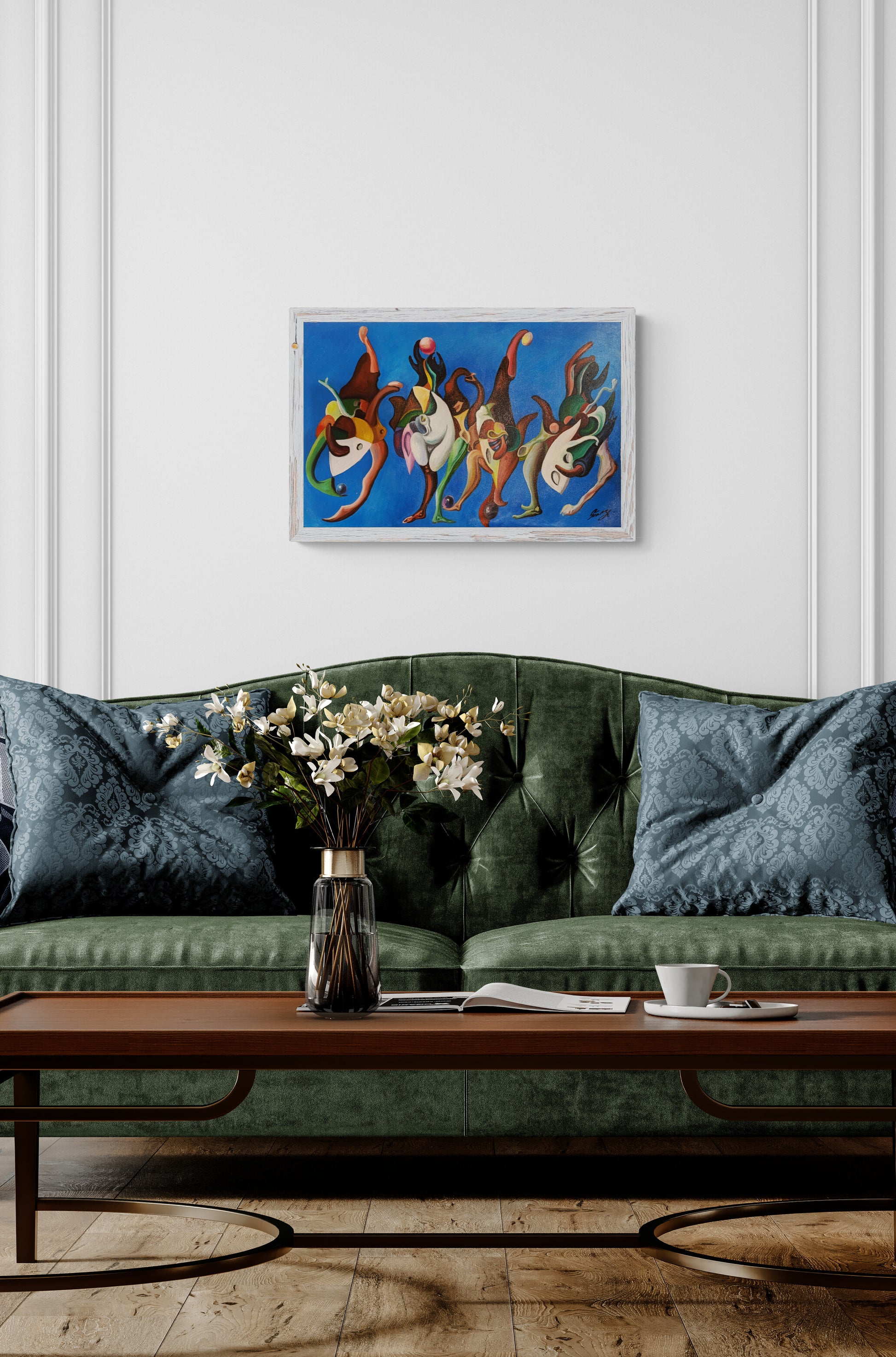 The fluid forms and playful interactions between colors create a visually stimulating experience, perfect for modern spaces that crave energy and artistic flair. This piece invites viewers to interpret its whimsical shapes and embrace the freedom of abstract expression.