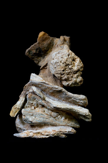 An evocative sculpture that appears to emerge naturally from the rock itself, resembling a profile of a wise figure in contemplation. The layering and textures of the stone convey a sense of ancient knowledge and patience, as if the figure has silently observed the passage of time. This piece embodies a deep connection to the earth, reminding viewers of the enduring presence and subtle wisdom embedded in natural forms.
