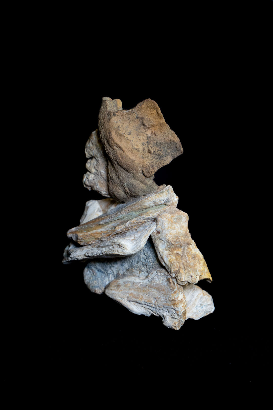 Sculptures built with raw materials collected in beaches, Cliffs or quarries.