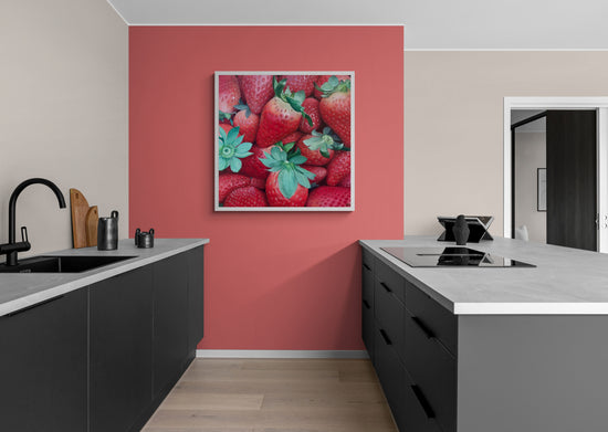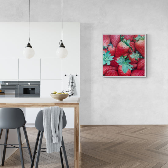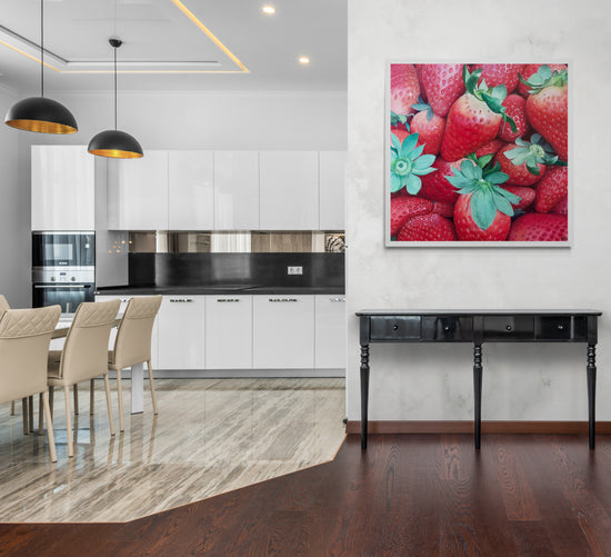 The composition celebrates nature's vivid colors and textures, capturing the essence of ripe, juicy strawberries ready to be savored.