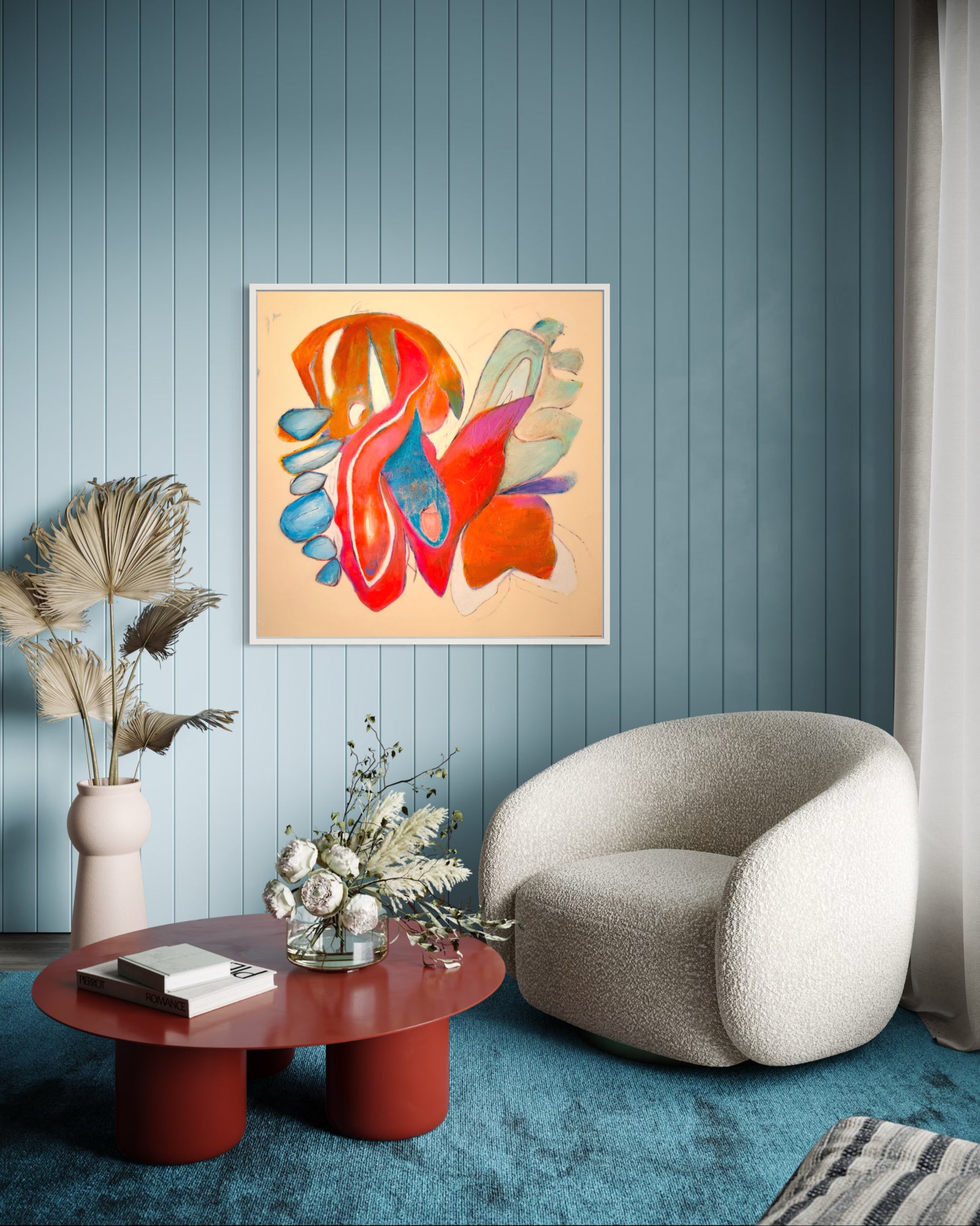 With vibrant reds, bold blues, and fluid movement, Sunlight Stories III pulses with the energy of a new day. It captures the warmth and unpredictability of sunlight through abstract forms and dynamic textures.