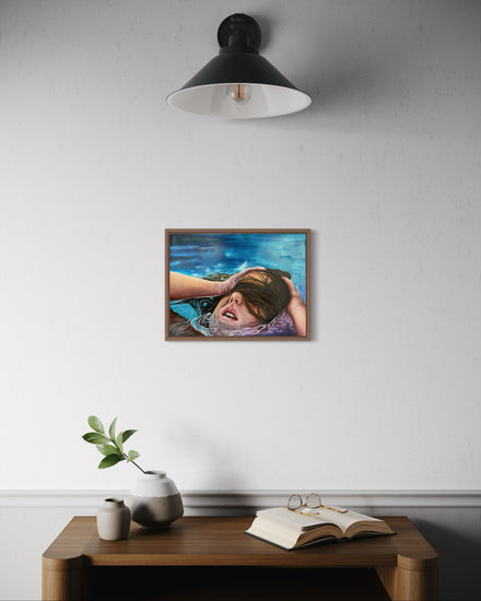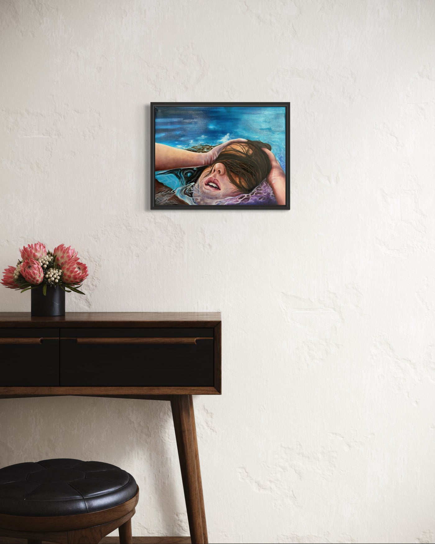 The ripples of light and hair drifting across her face invite the viewer to linger on the threshold between tension and release, above and below, breath and surrender.