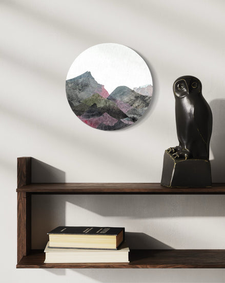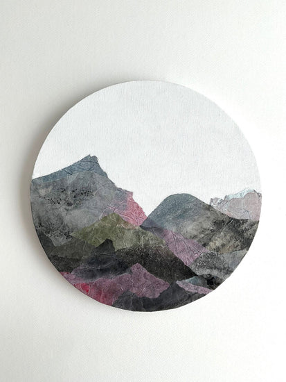 This artwork is a continuation of the Taliscas series, capturing the essence of mountainous landscapes with layered textures and a harmonious blend of muted colors. The circular cotton canvas adds a unique dimension to the piece, emphasizing the organic form of the mountains. This abstract depiction, with hints of earthy and cool tones, evokes a quiet introspection and connection to natural landscapes.