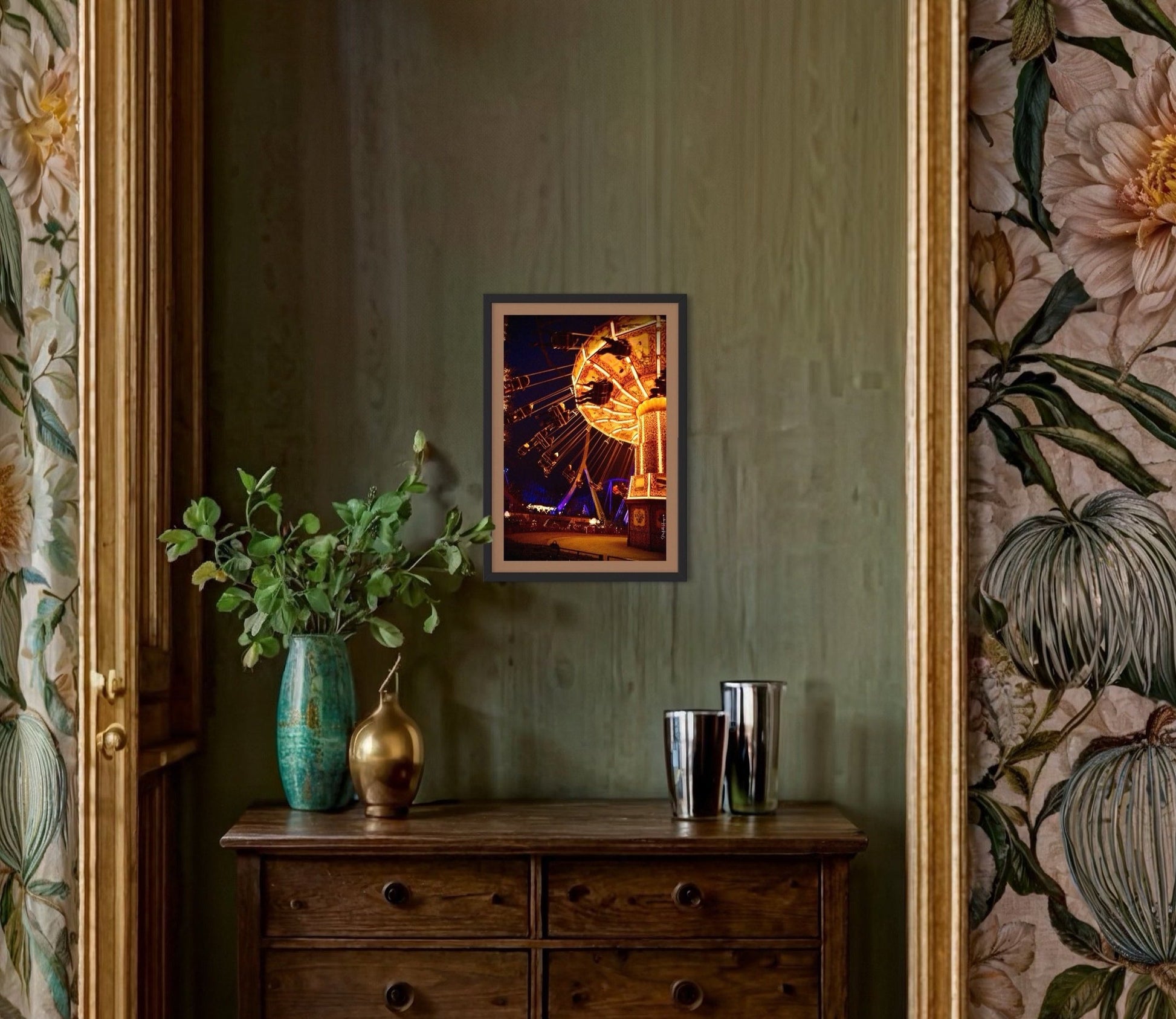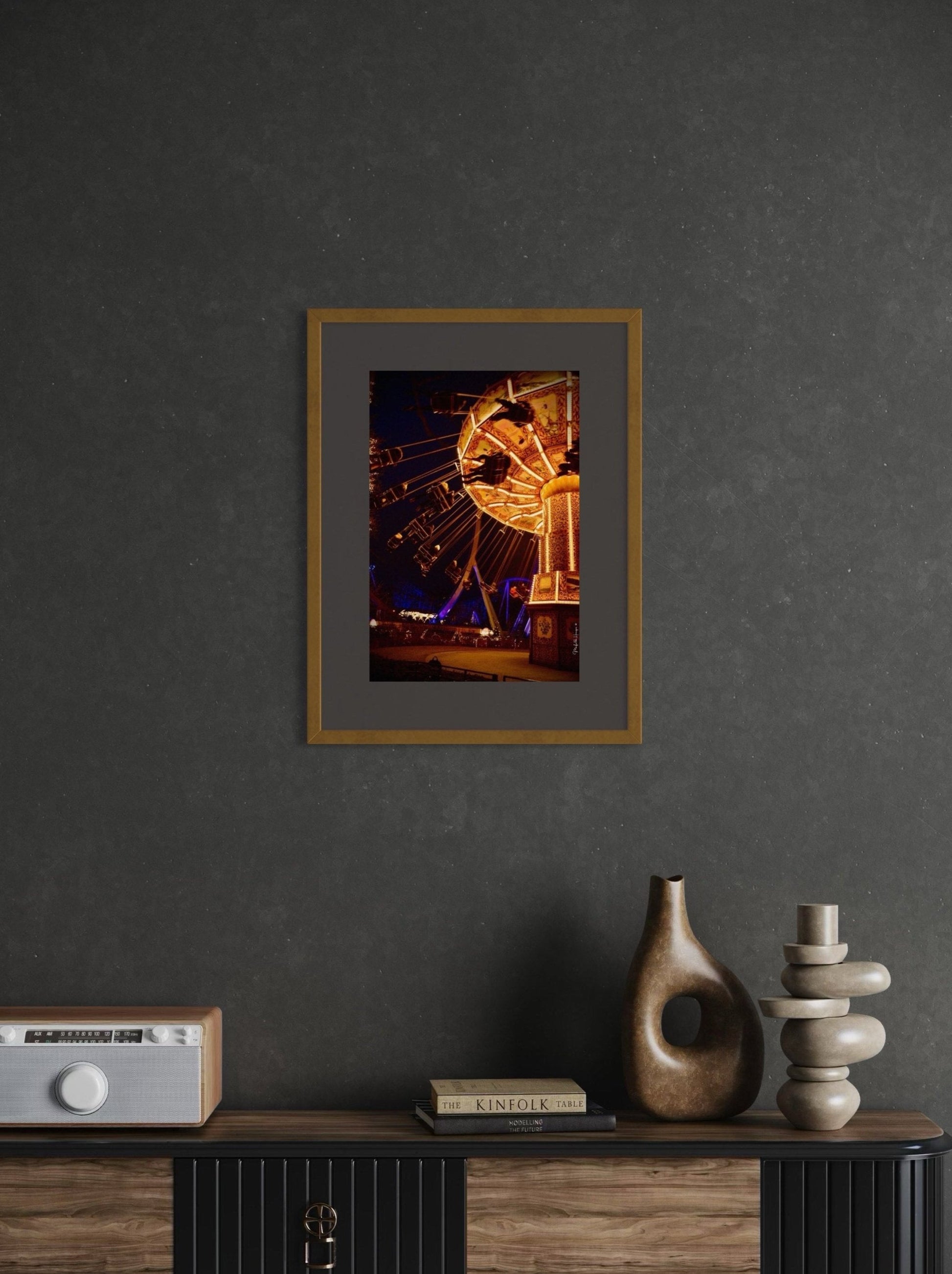 As we observe this scene, we feel a blend of enchantment and serenity. The spinning carousel symbolizes the passage of time, the fleeting nature of moments of happiness that quickly fade yet remain etched in memory. The photograph freezes a fleeting instant where everything is reduced to light, color, and motion.