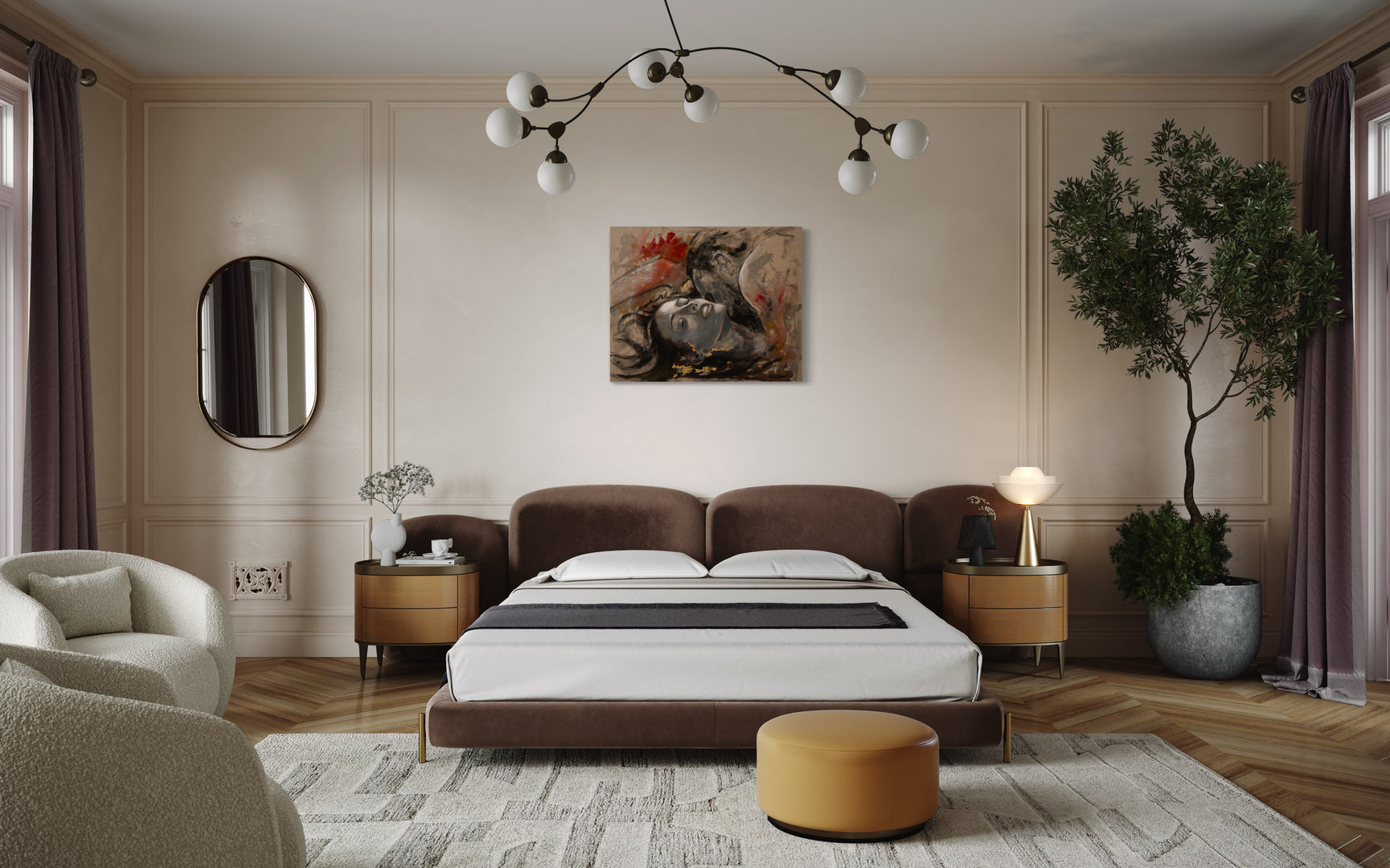 This piece masterfully combines expressionist and abstract elements to explore themes of passion, emotion, and the inner tumult of the human spirit.