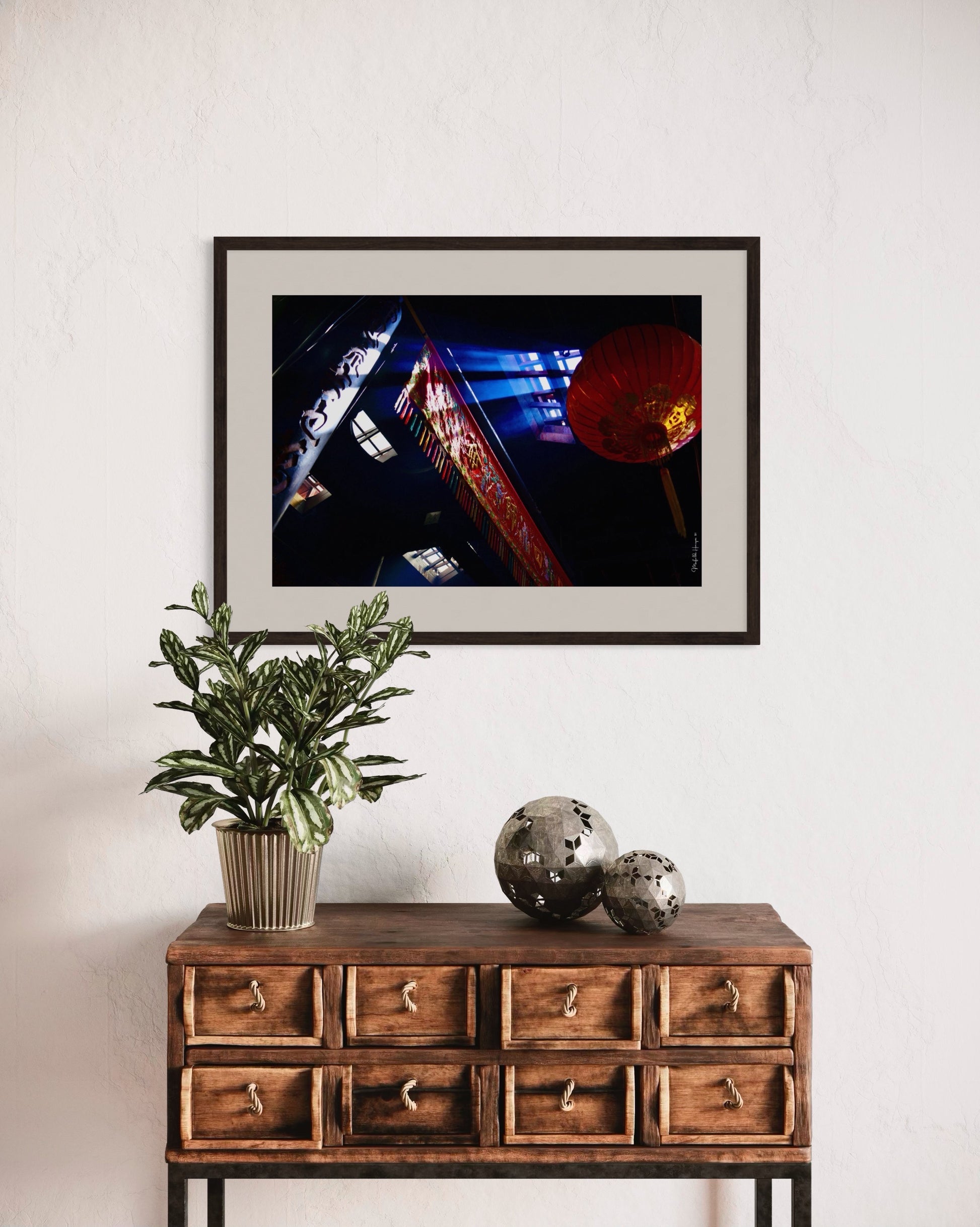 In this captured moment, the soft light streaming through the upper window of the Chinese temple illuminates the space poetically. The rays of light dance among the clouds of incense, creating an ethereal atmosphere where the sacred and the everyday intertwine. The light reveals intricate details of the architecture that might otherwise go unnoticed: the delicate carvings in the wood, the vibrant colors of the adornments, and the textures that tell stories of centuries.