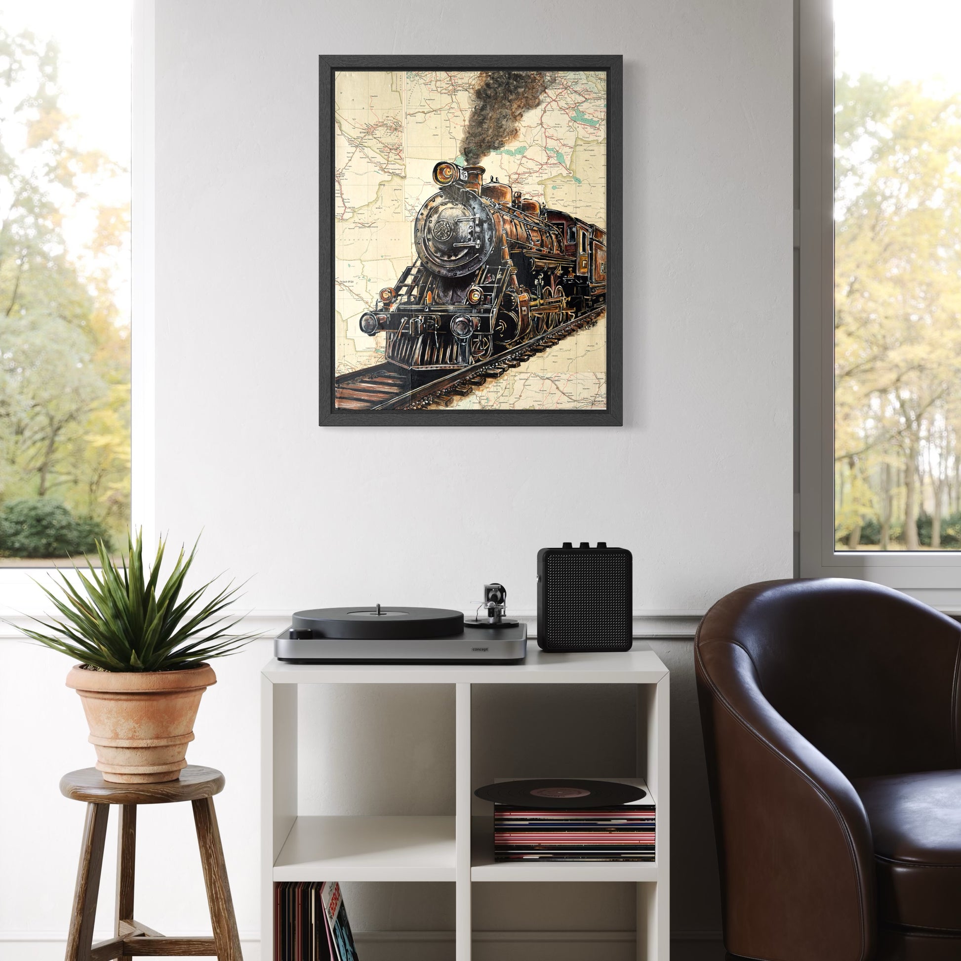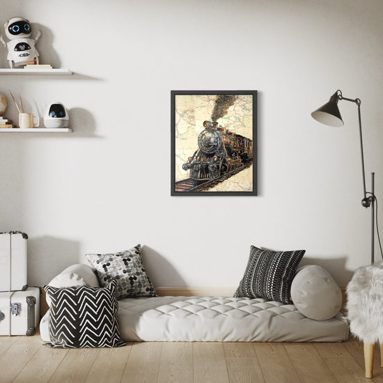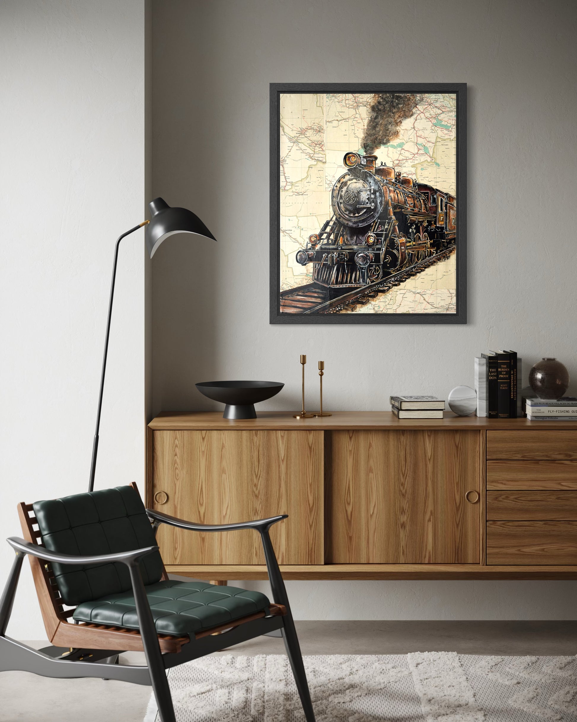 In Through the Steams of Memories, Irina Kurganskaya fuses nostalgia and motion into a striking visual journey. A powerful steam locomotive emerges from the past, its iron body rendered with expressive detail and realism, while a vintage map forms the canvas beneath, a symbolic landscape of travel, time, and human ambition.