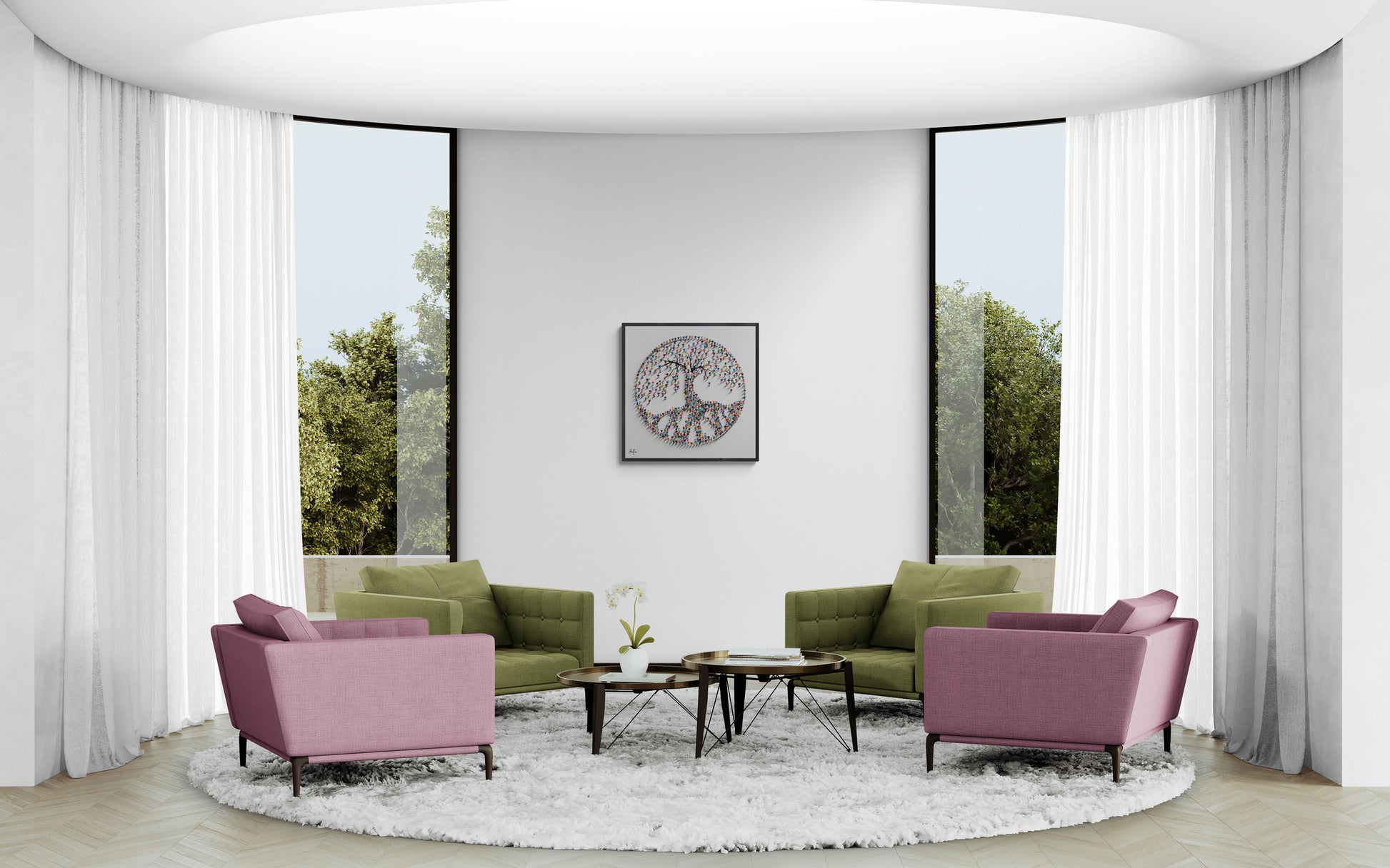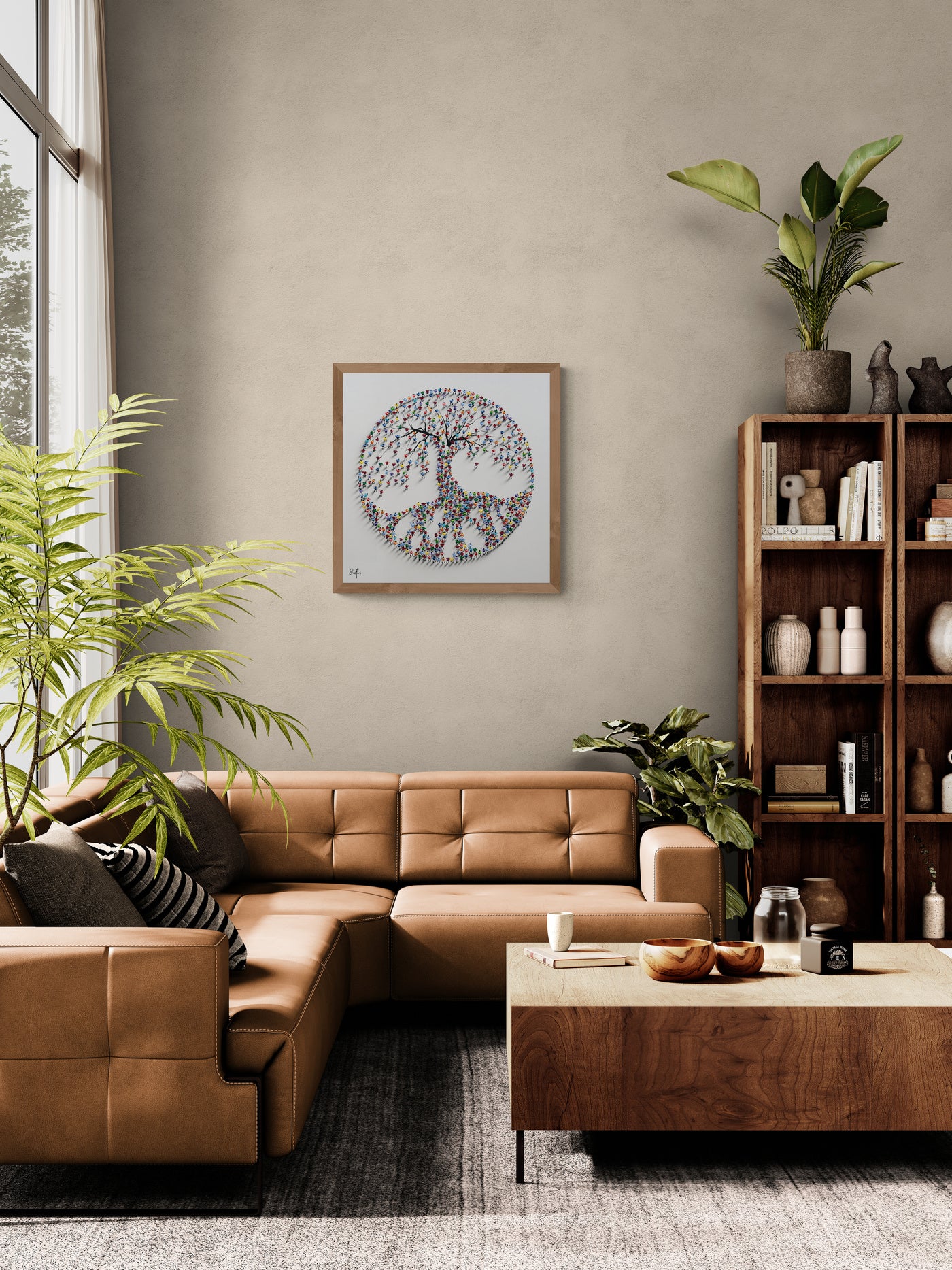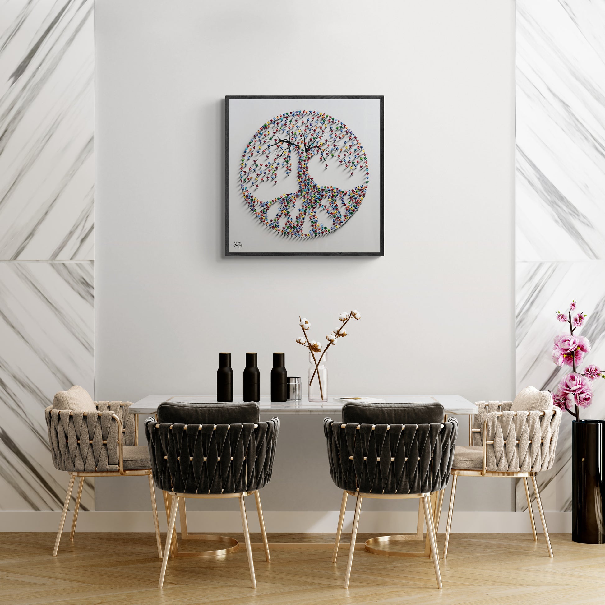 A mesmerizing sculptural artwork where countless vibrant human figures form a majestic tree, symbolizing growth, unity, and connection.