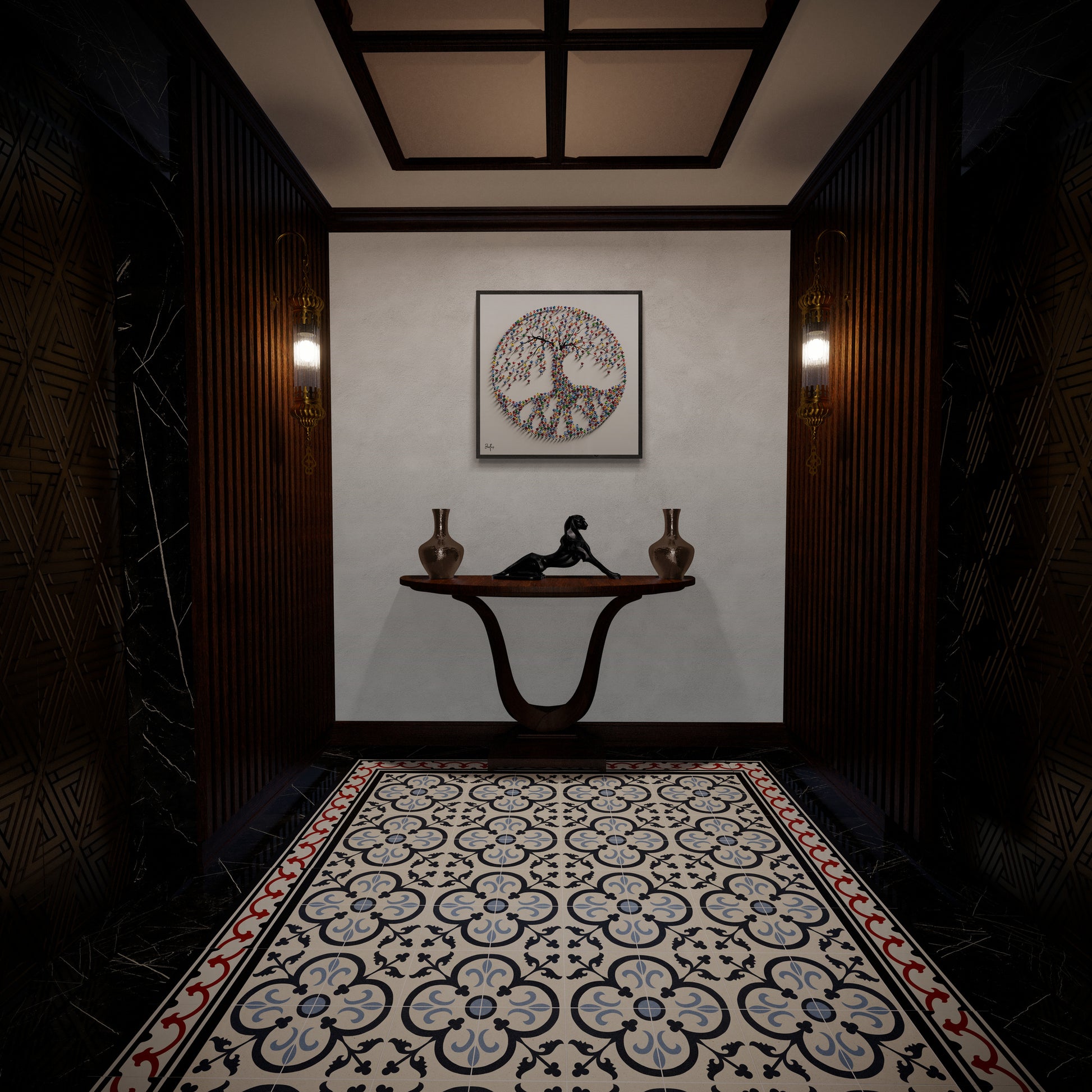 The play of shadows and relief adds depth, making this a dynamic and thought-provoking piece.