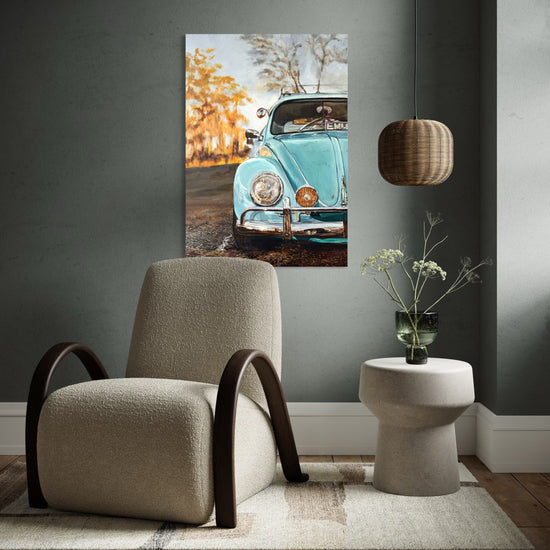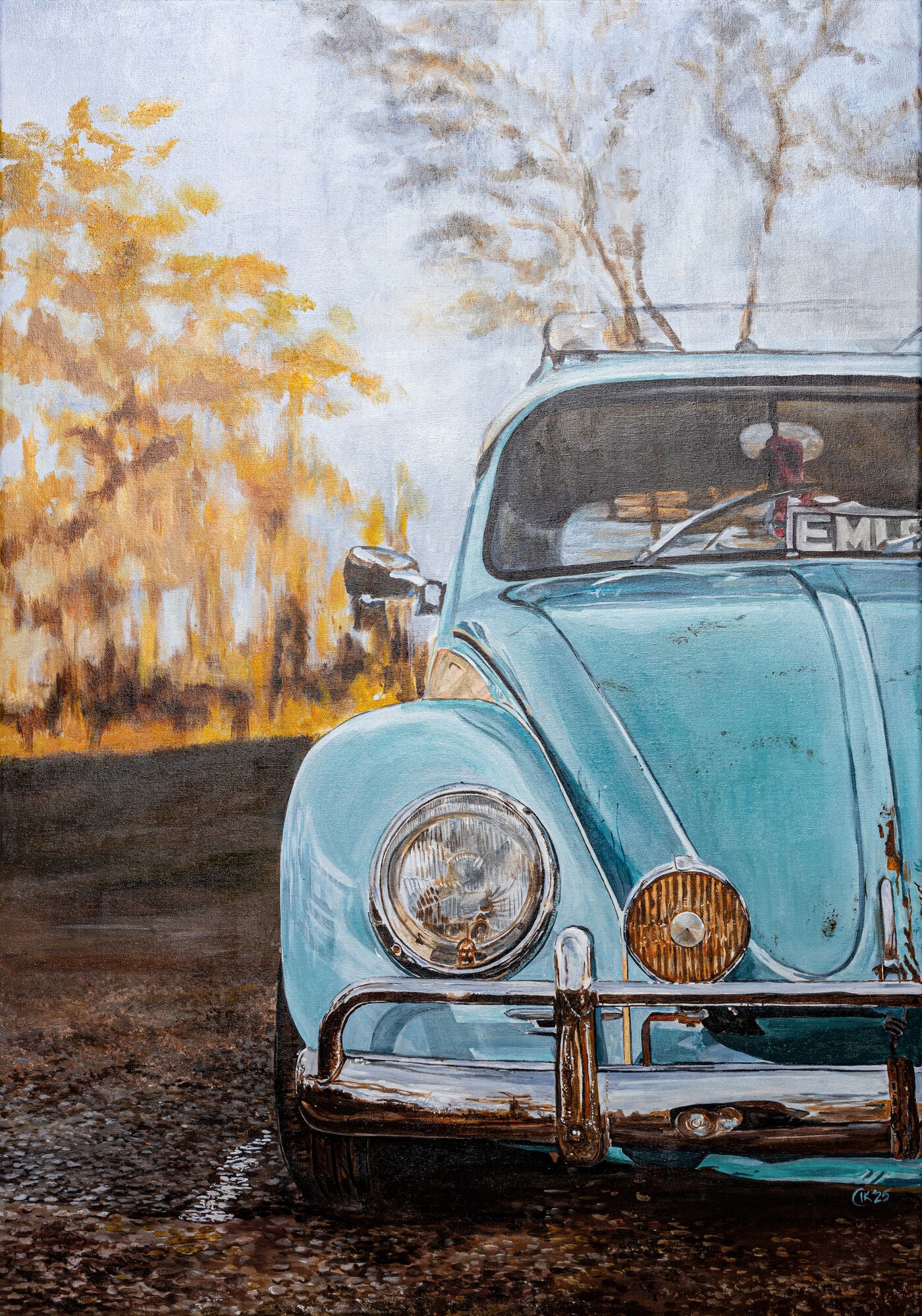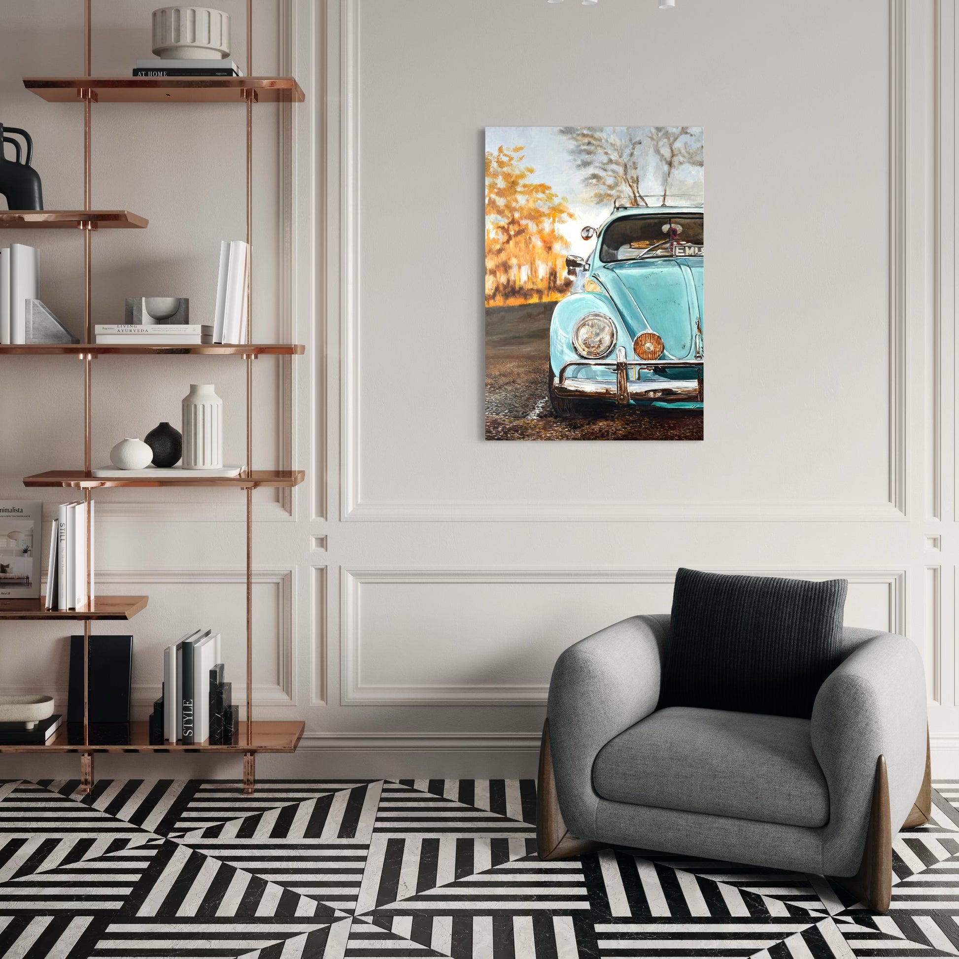 Turquoise Memories captures the nostalgic charm of a classic car bathed in the golden hues of autumn. The artist invites viewers to travel through time, to moments of freedom, simplicity, and open roads.