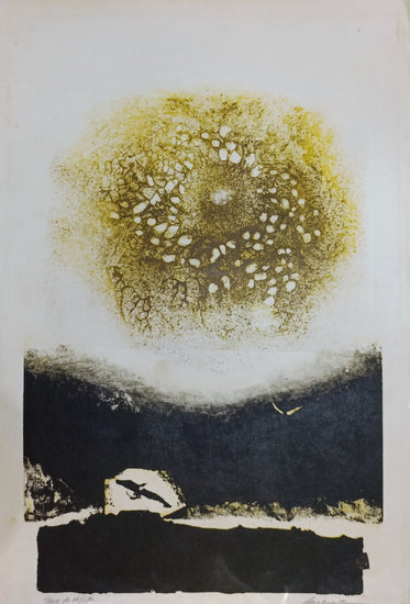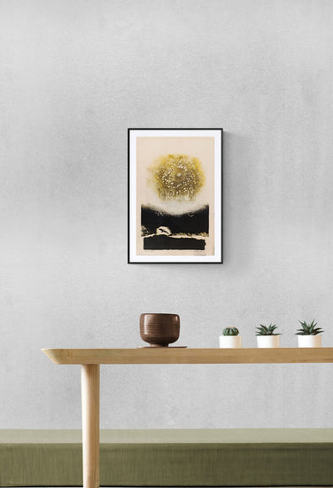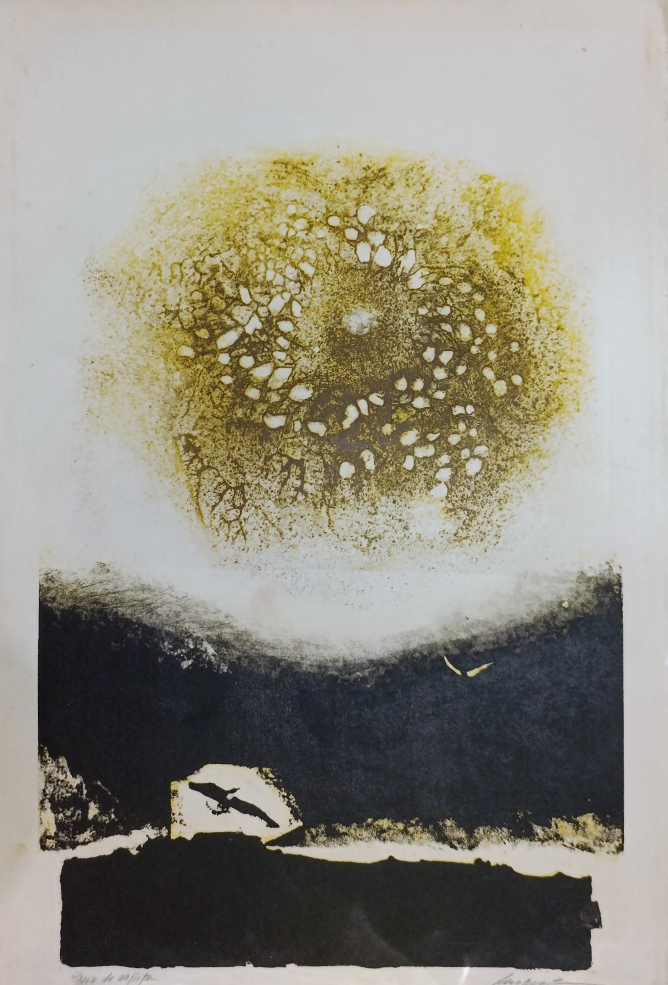 This abstract lithograph rendered on high-quality artisanal paper weighing between 600-750 grams.