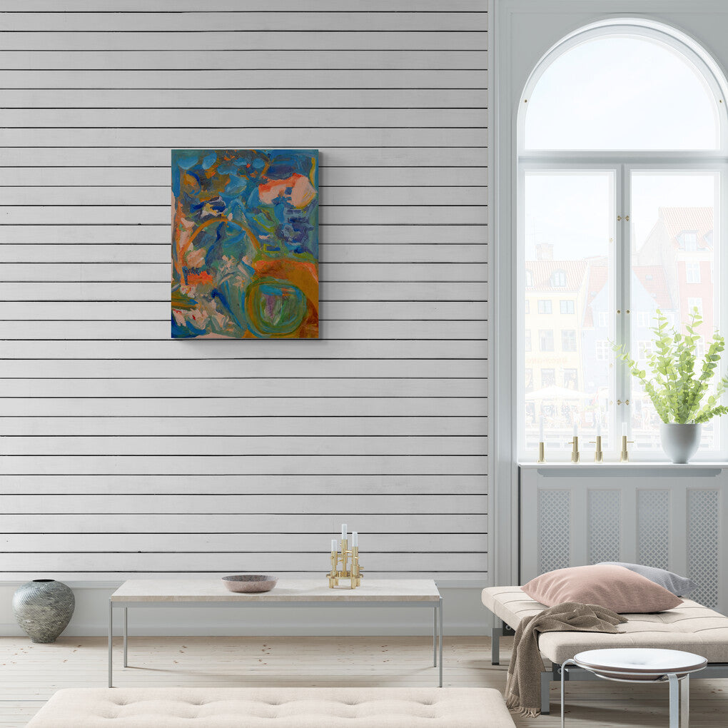 This impressionistic painting captures the bustling energy of a city street on a rainy day. The wet pavement reflects the vibrant colors of buildings and the soft glow of streetlights, creating a lively and atmospheric scene. The loose brushstrokes and blurred forms convey the movement and dynamism of urban life.