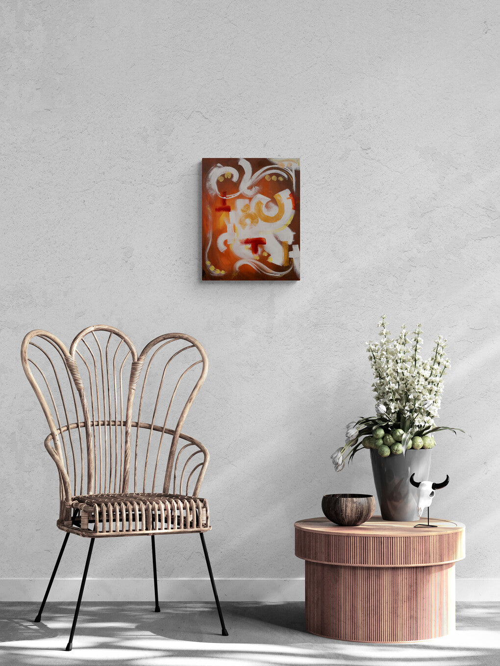 An abstract composition filled with dynamic swirls and vibrant colors, this painting evokes a sense of movement and emotion. The interplay of warm and cool tones creates a harmonious yet intense visual experience, reflecting the chaotic beauty of human feelings.