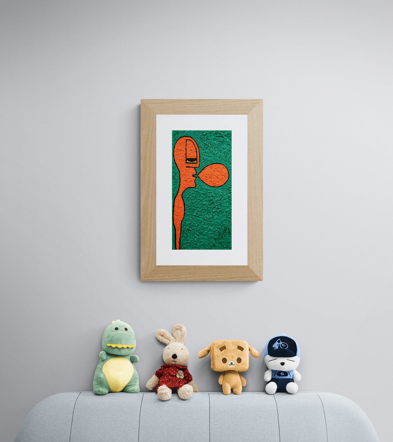 An abstract depiction of two profiles in vibrant orange, sharing a moment of connection against a textured emerald background.