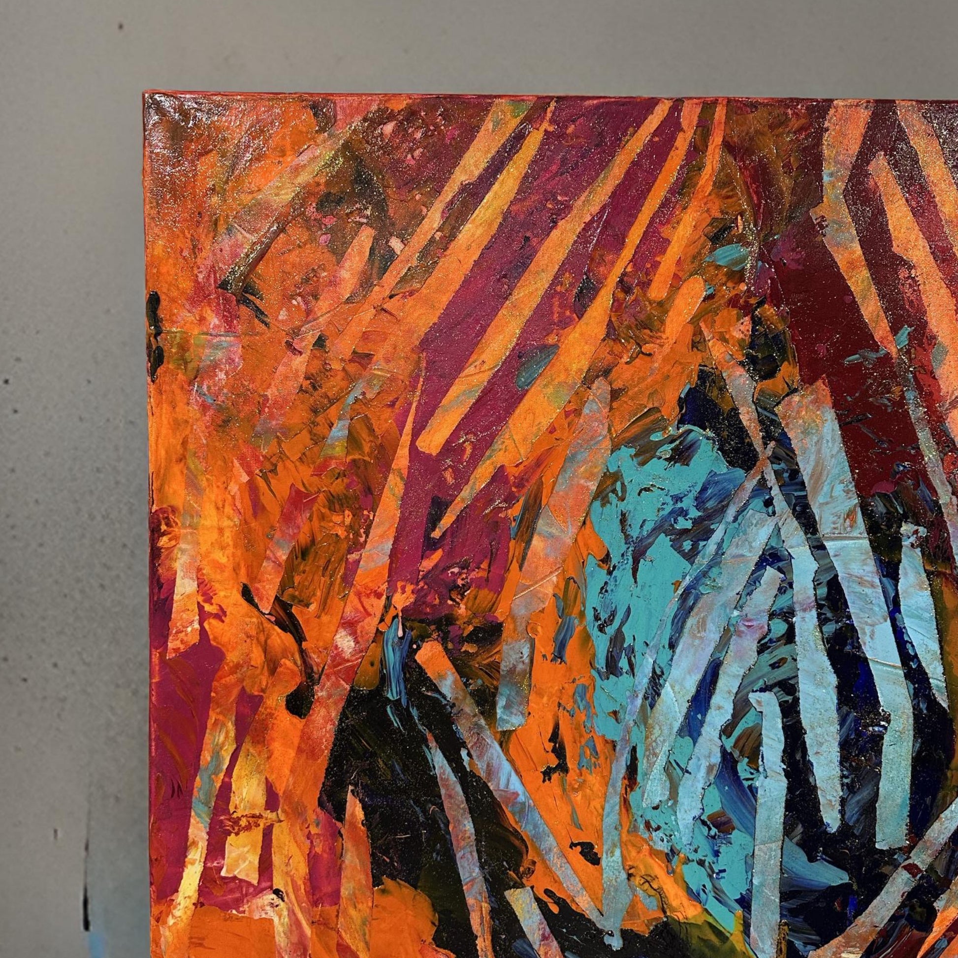 This piece is more than just an abstract composition. It is an invitation to feel the vitality of the colors, to dive into a universe where each hue expresses an emotion beyond the confines of the canvas.