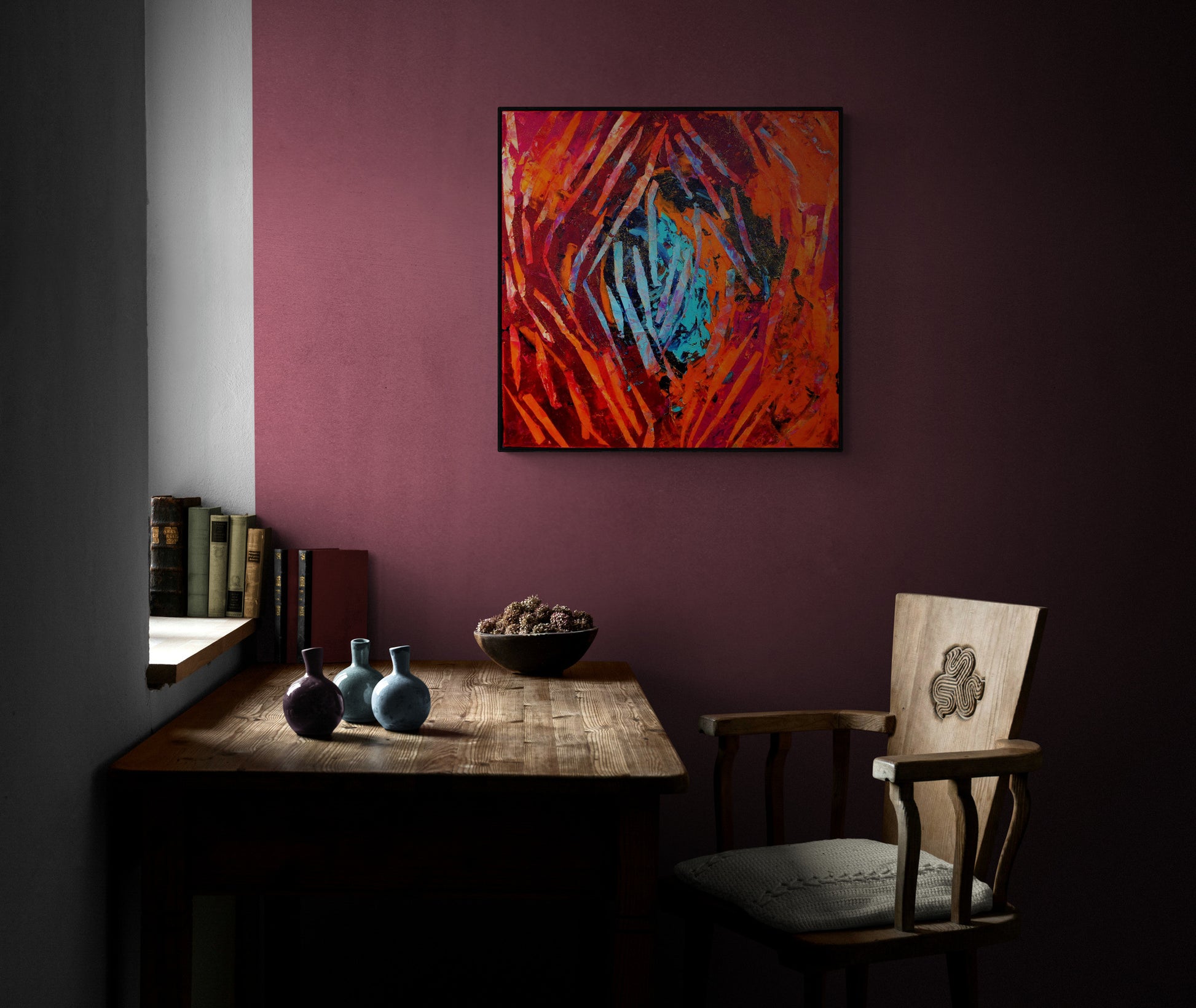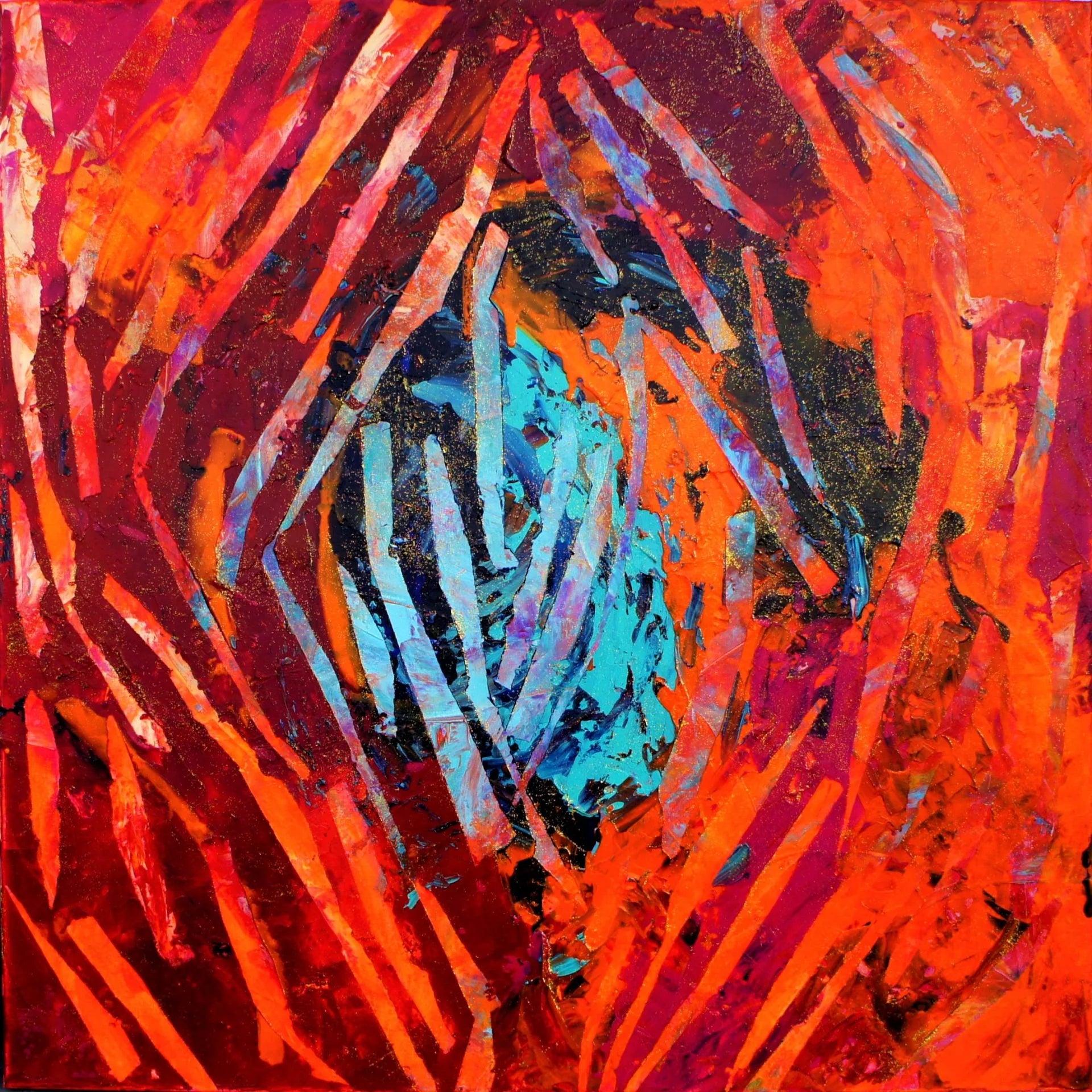 "Fujiyama" is a pictorial dance where each brushstroke reveals a burning emotion. The interplay between the intense reds and deep blue tones creates a powerful, almost magnetic dynamic, pulling the viewer into a whirlwind of emotions and energies.